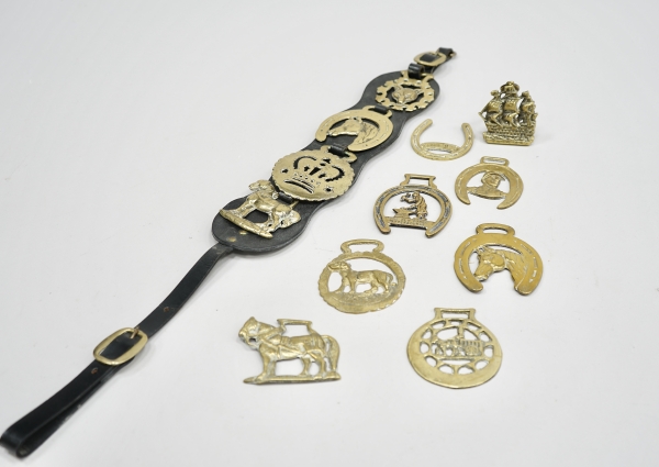 12 st emblem i mässing "Horse Brass" 1900-tal