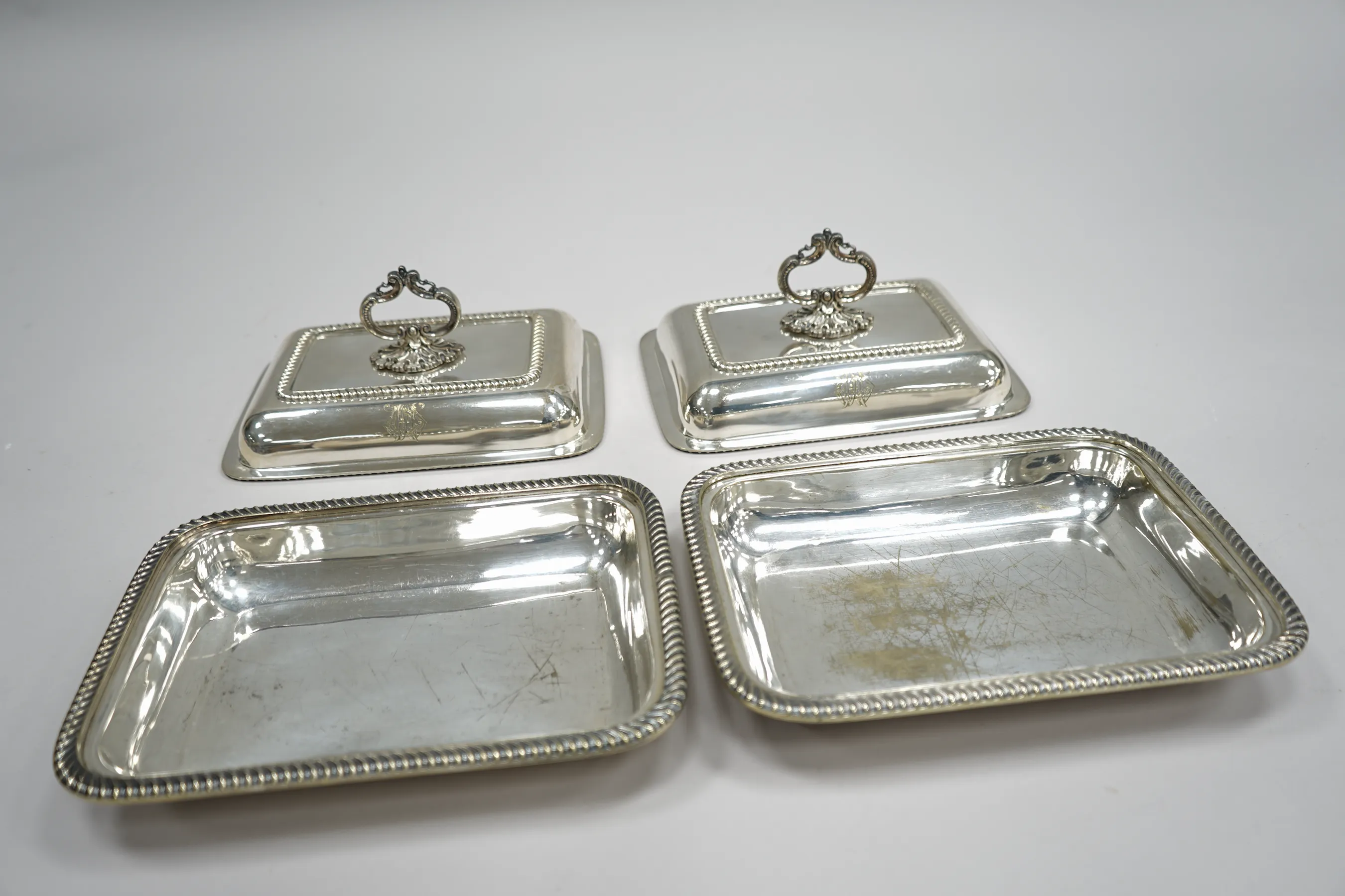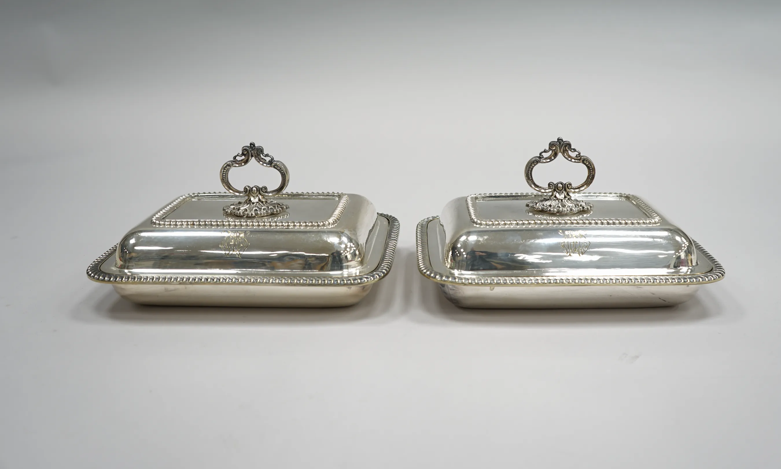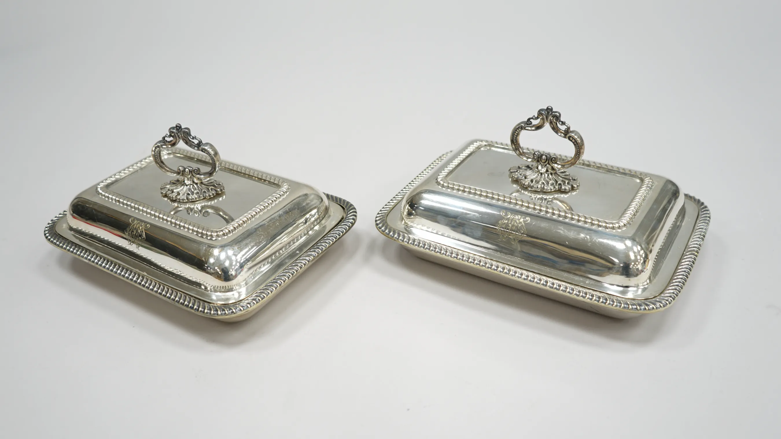 h. 8,5 28x20, med monogram, slitage i botten på ena