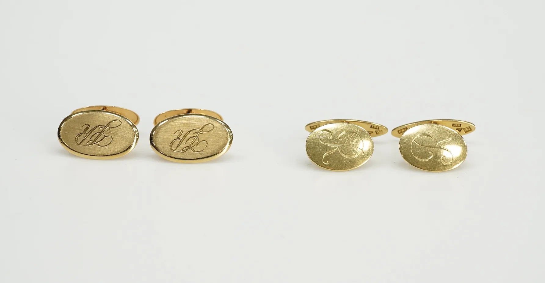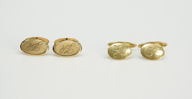 105942. 2st Par Manschettknappar 18K m.Monogram Vikt.11,7gr.