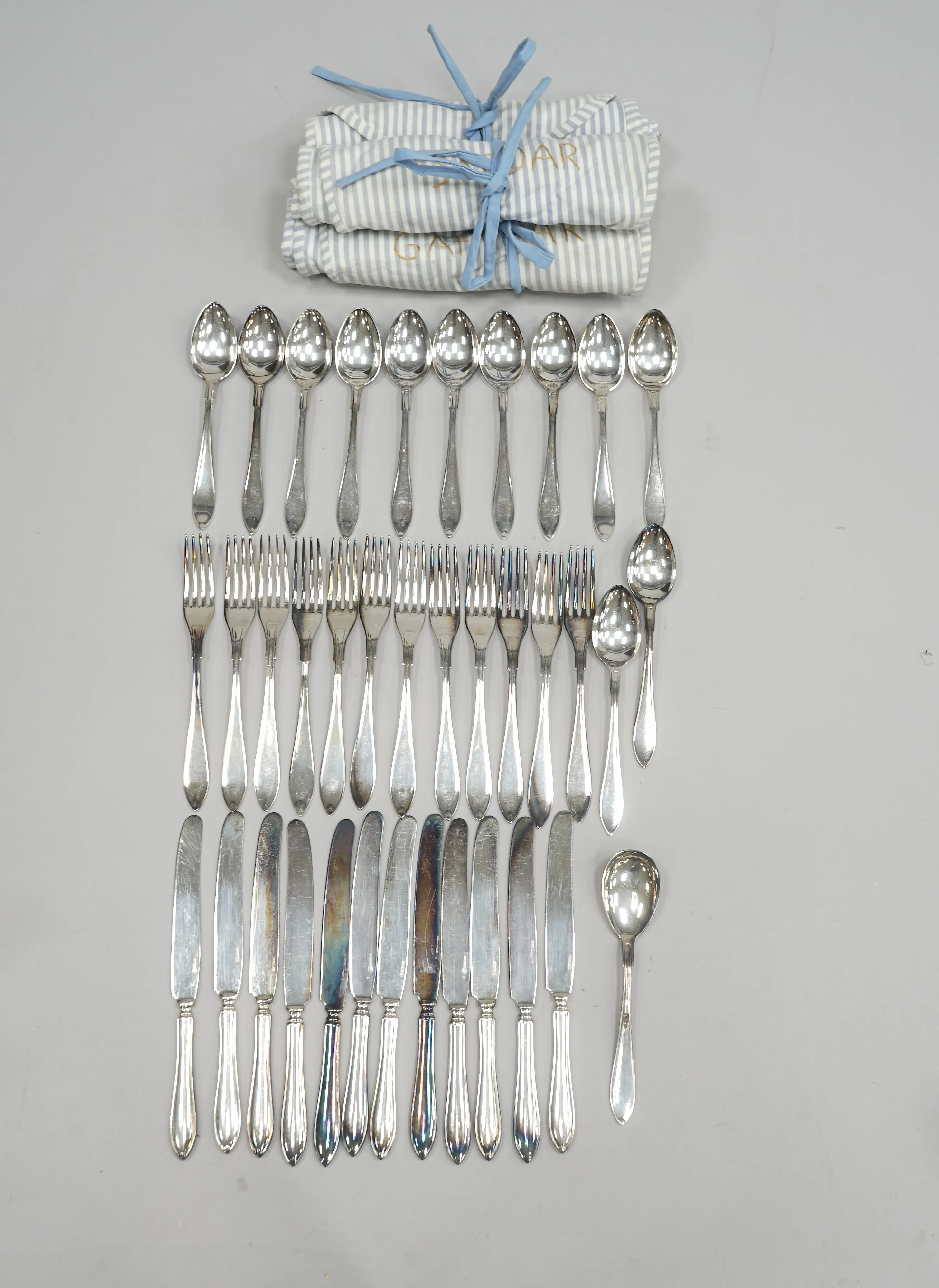 37 delar nysilverbestick, " Svenska Modellen" + bestickpåsar