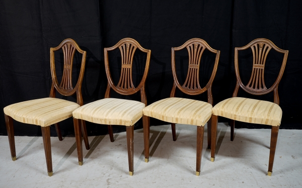 4 st stolar Gustaviansk stil med ryggbricka i Heppelwhitestil