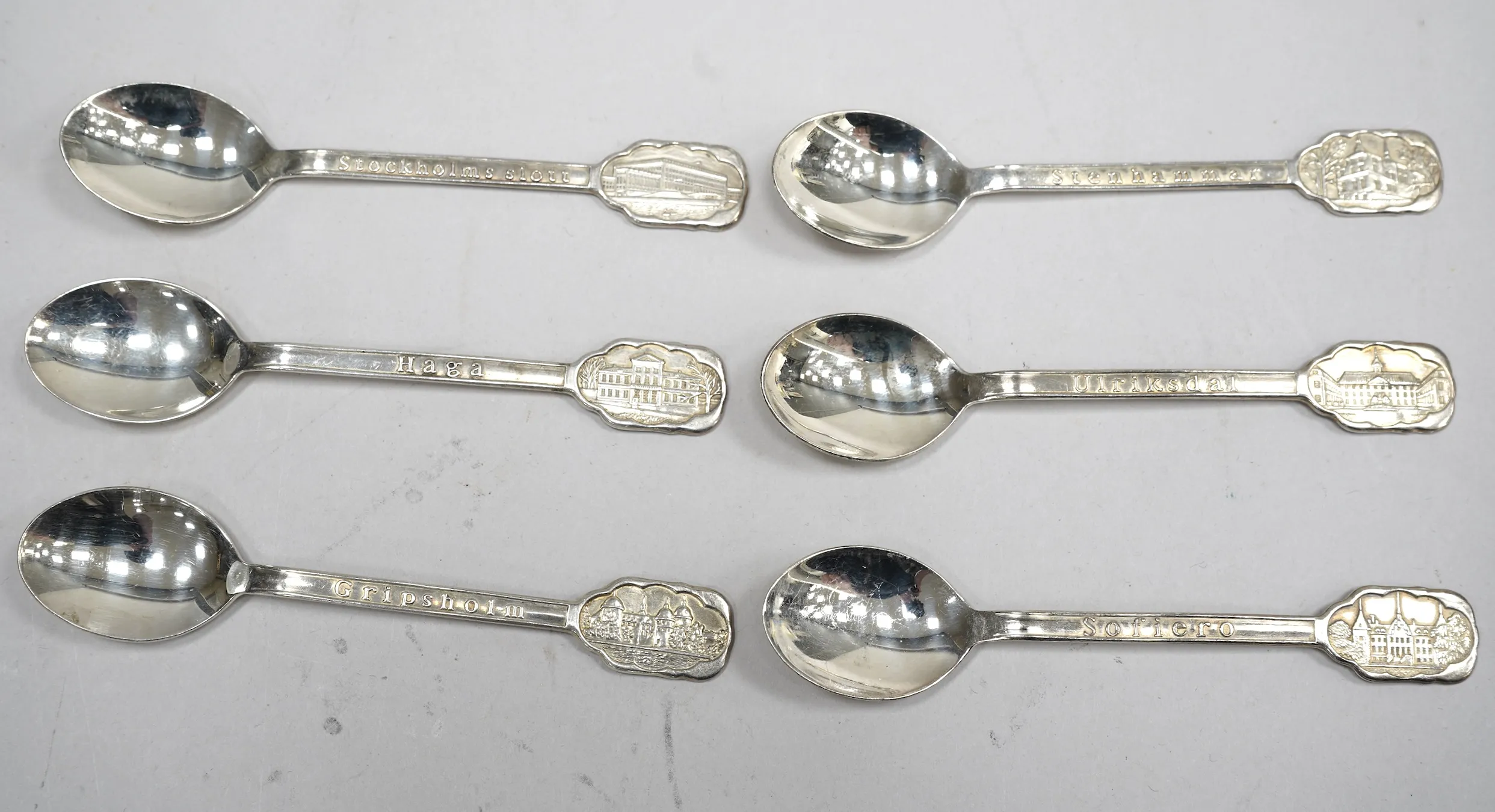 106157. 6st Kaffeskedar Silver, Svenska Slott Vikt 81,7gr.