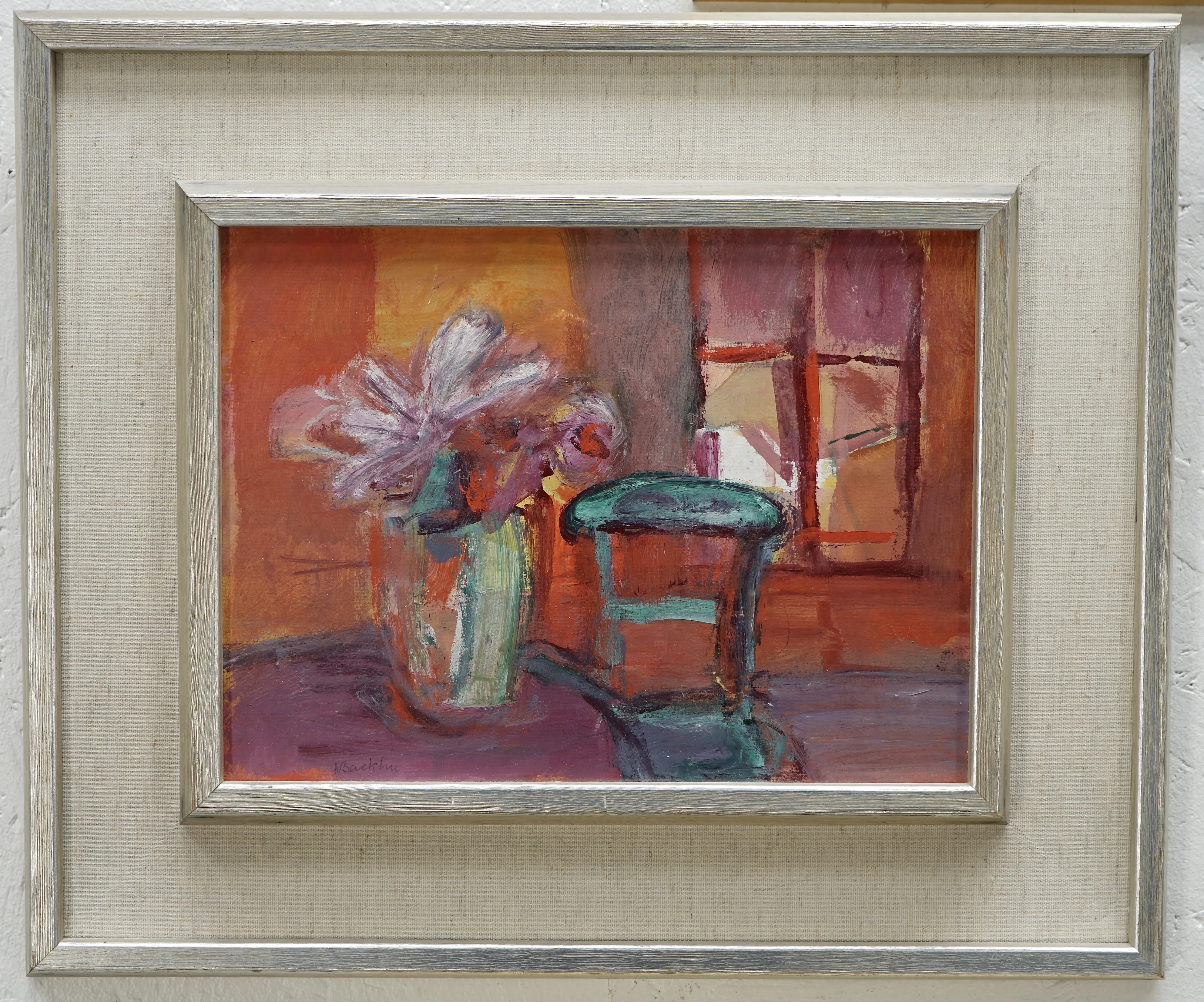 "Steriliserad blomma, 1985", "Sittande kvinna", "varm Interiör med blomvas", "Fundersam", "Figur som ber"