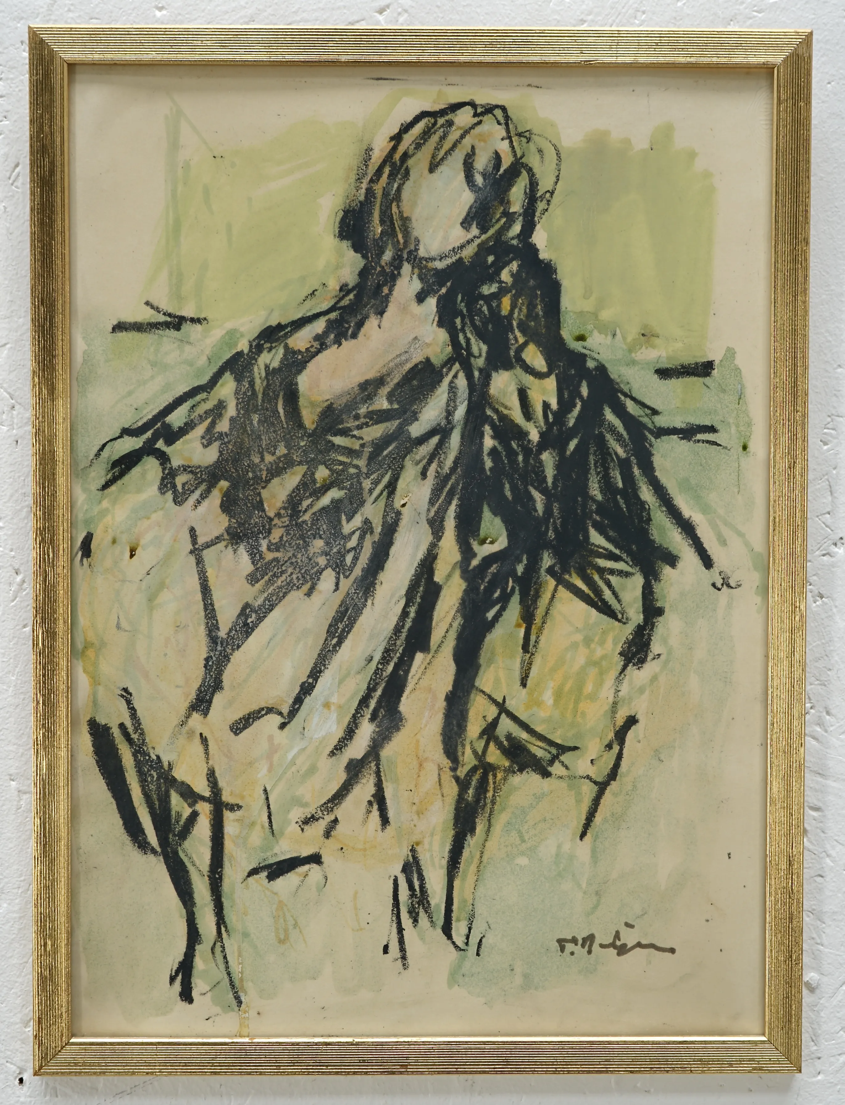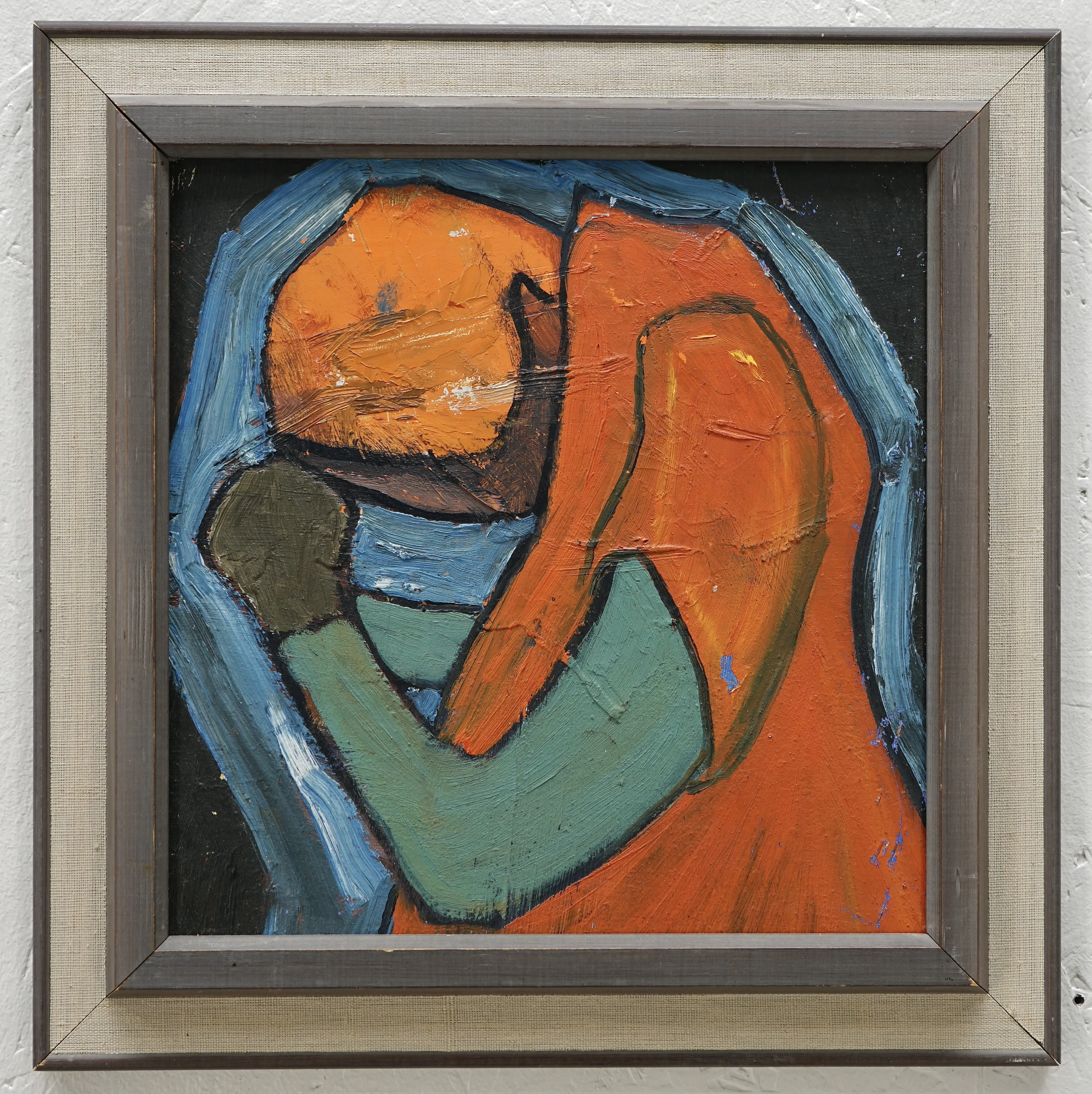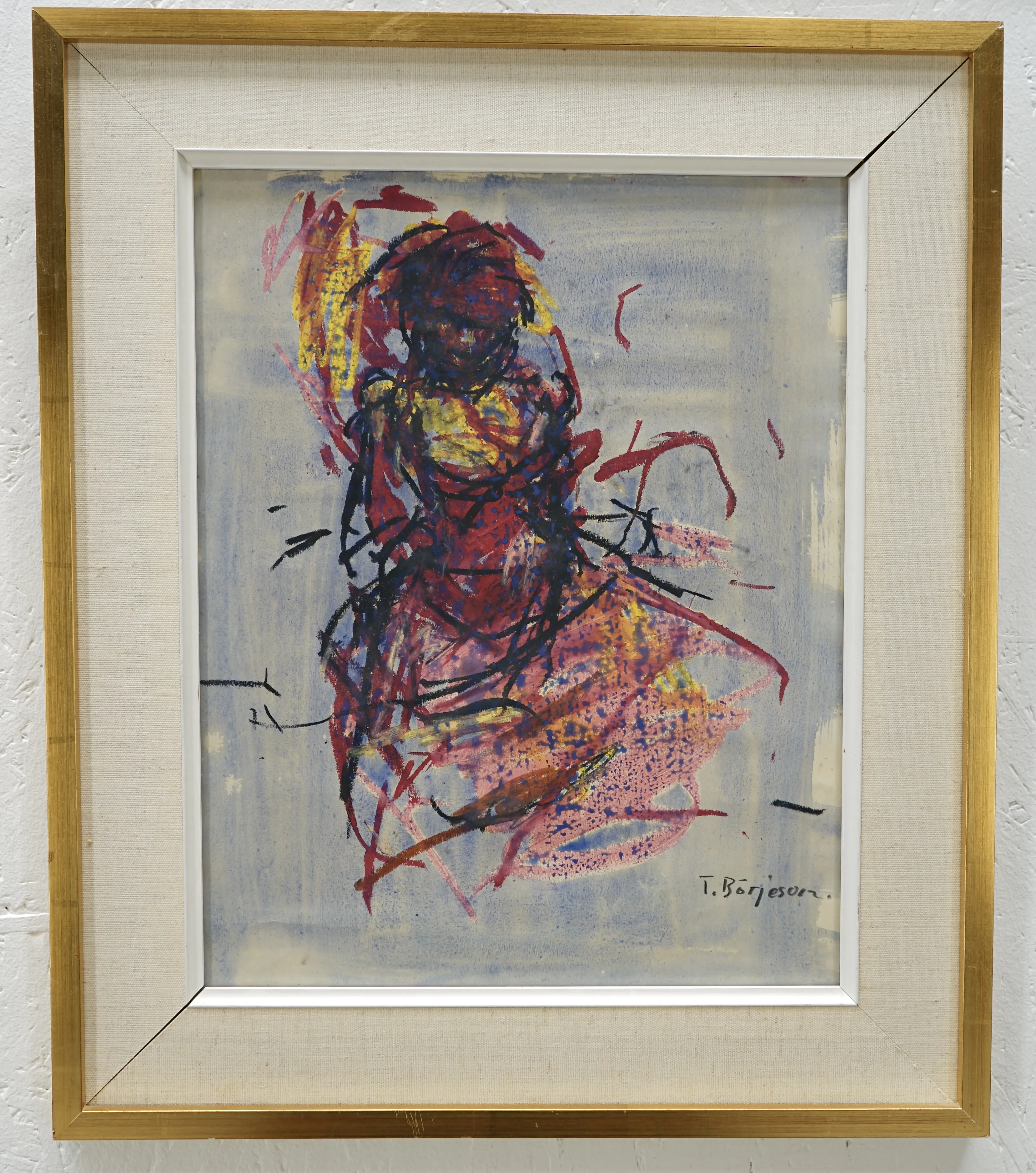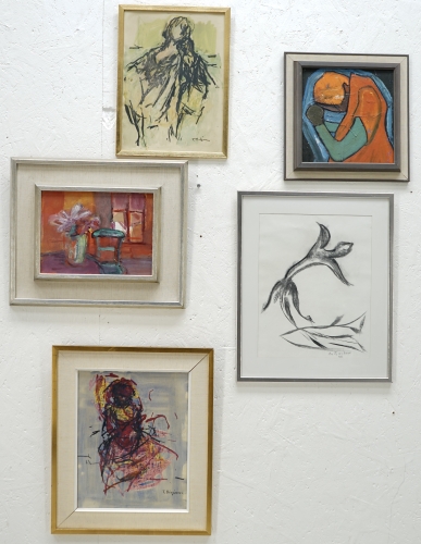 Bo Fjaestad Kol på papper 40x32 + Tore Börjesson Blandteknik 39x30,5 + 2st oidentifierade konstnärer olja pannå 22,5x30,5, blandteknik 39x28 + okänd konstnär olja pannå 27x26