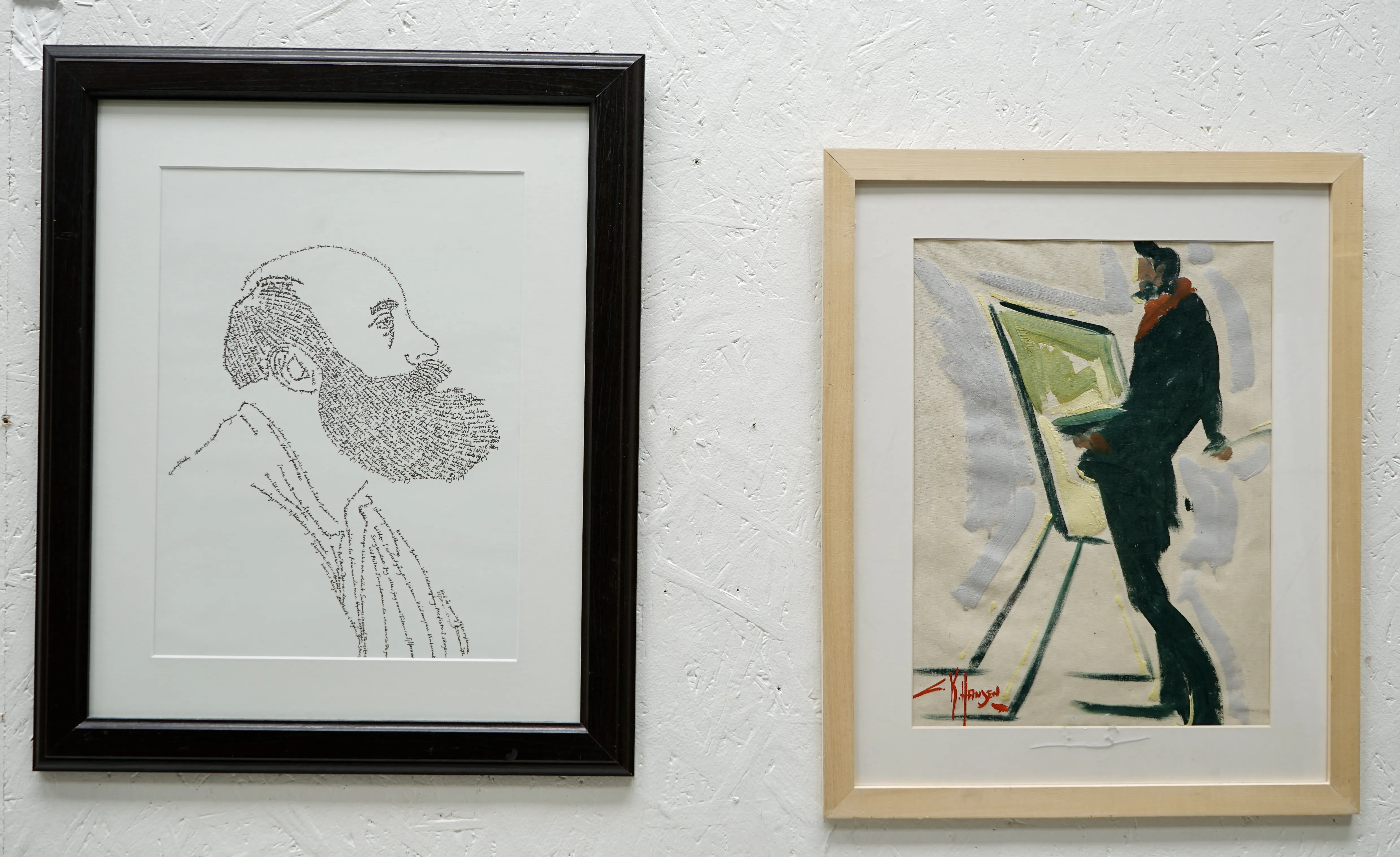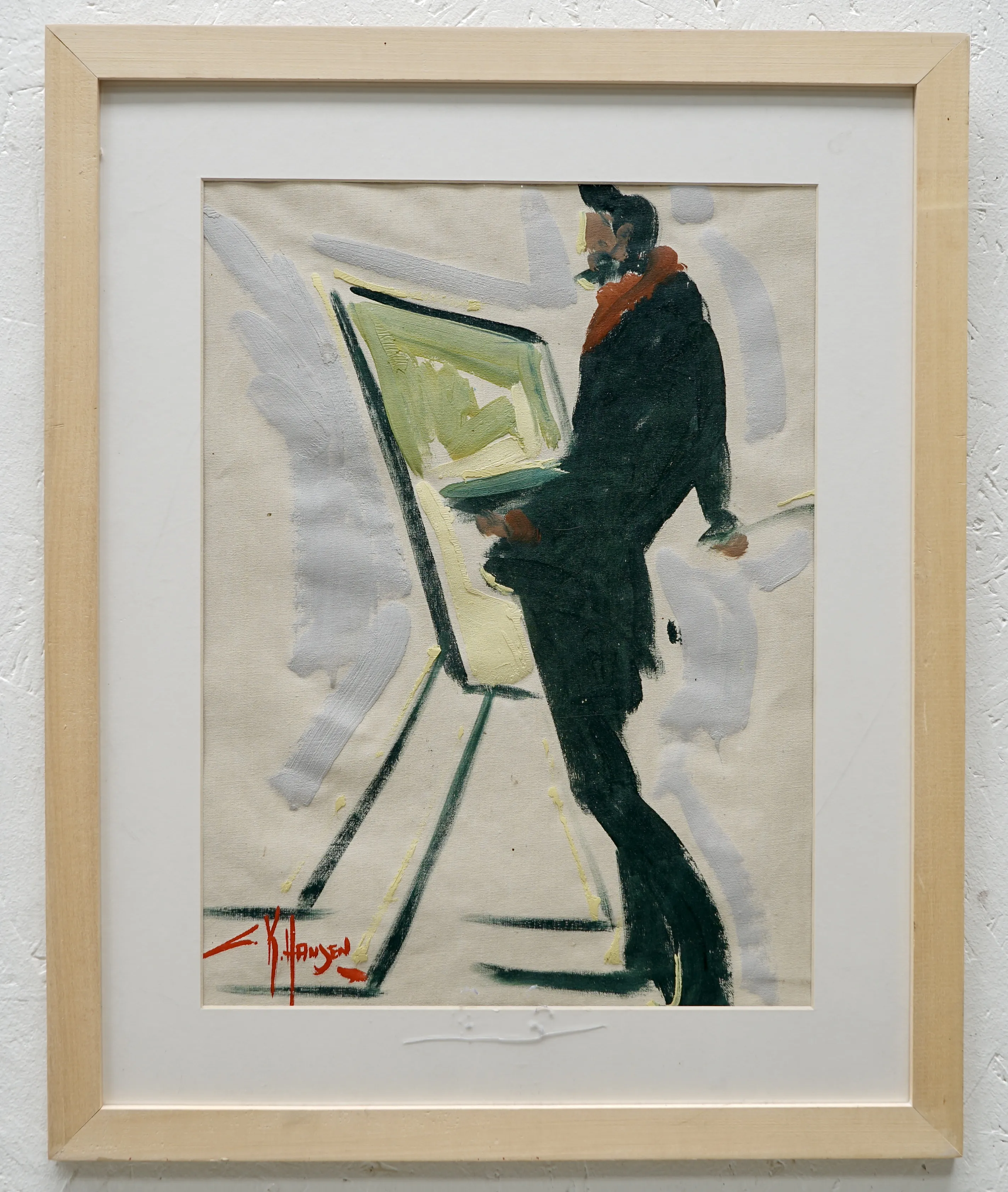 Carlo Knud Hansen Olja duk 39x28 + Oidentifierad konstnär tryck 39x29