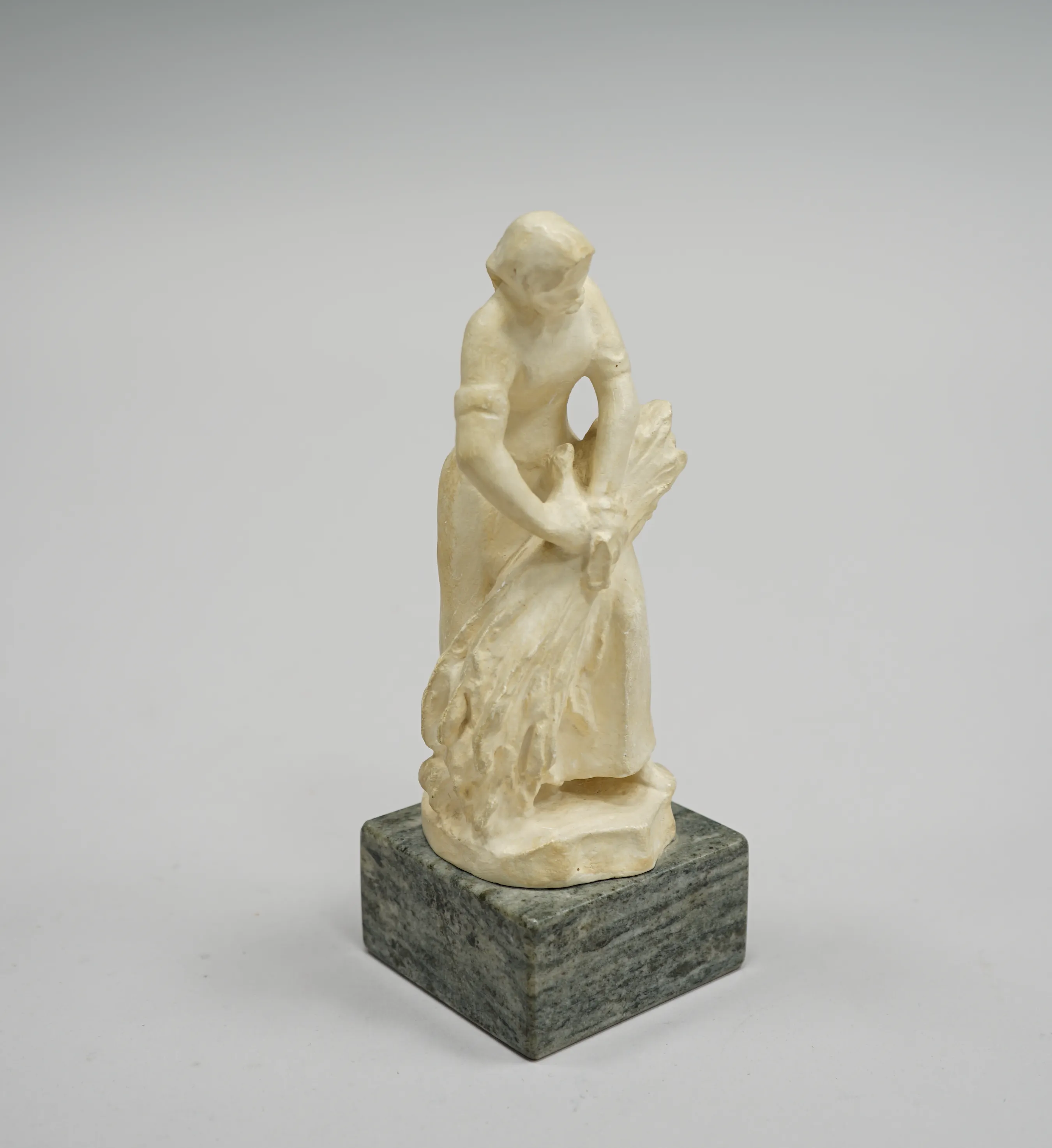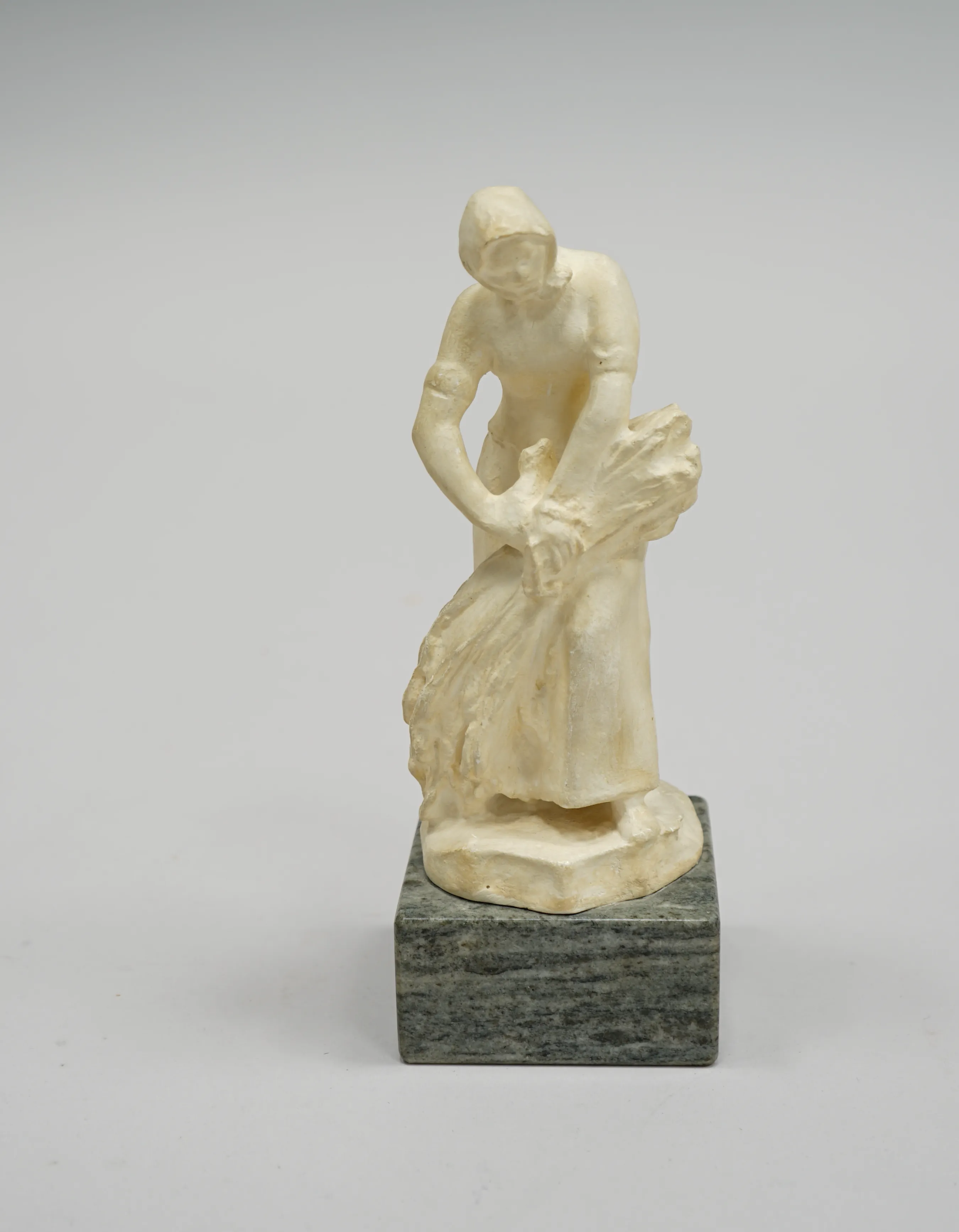 104888. Christian Eriksson "Kärvbinderskan" Figurin gips monterad på marmorsockel,