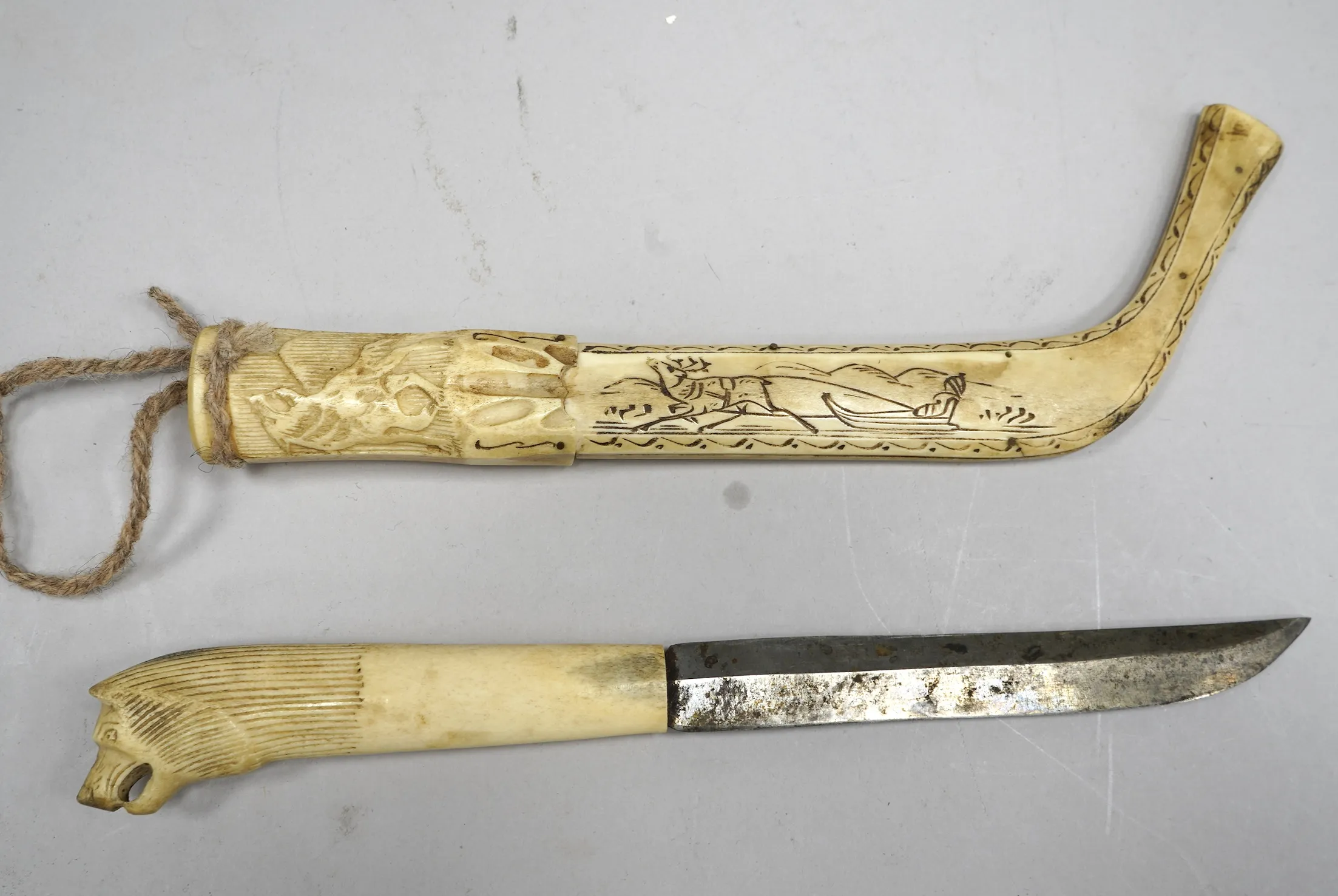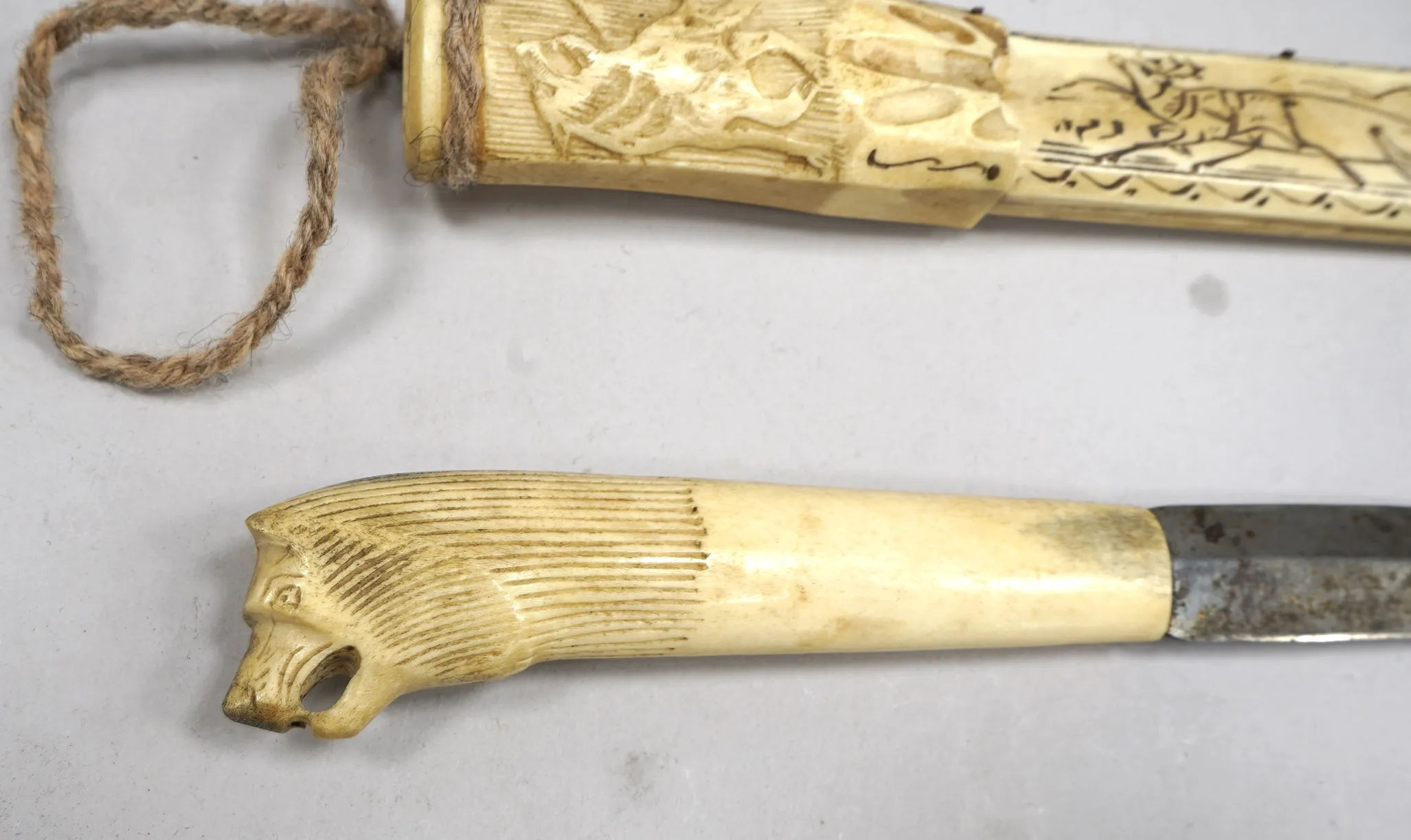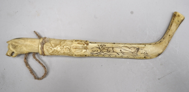 106215. Helhornskniv Signerad Evald 1952, Skaft i form av Varghuvud