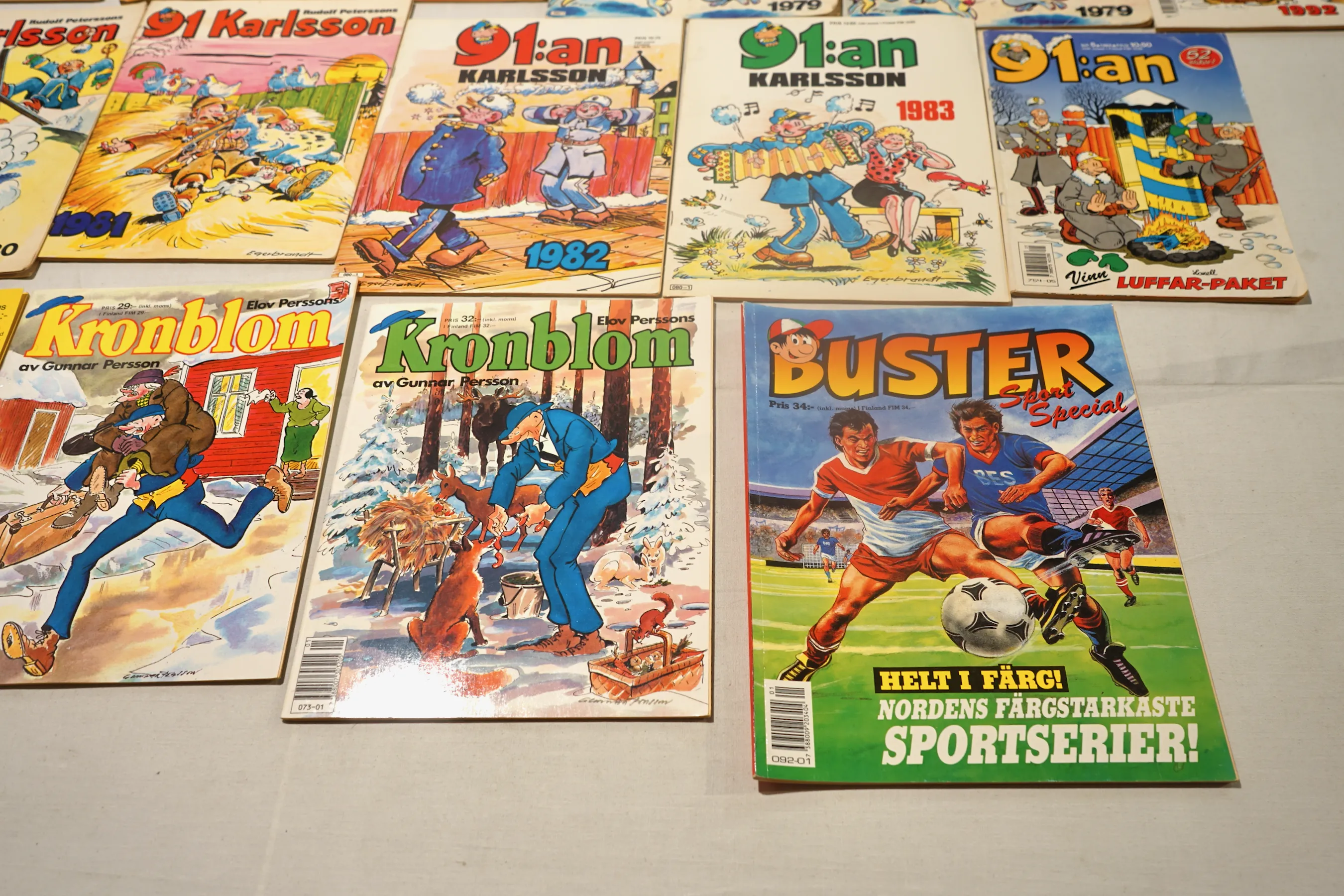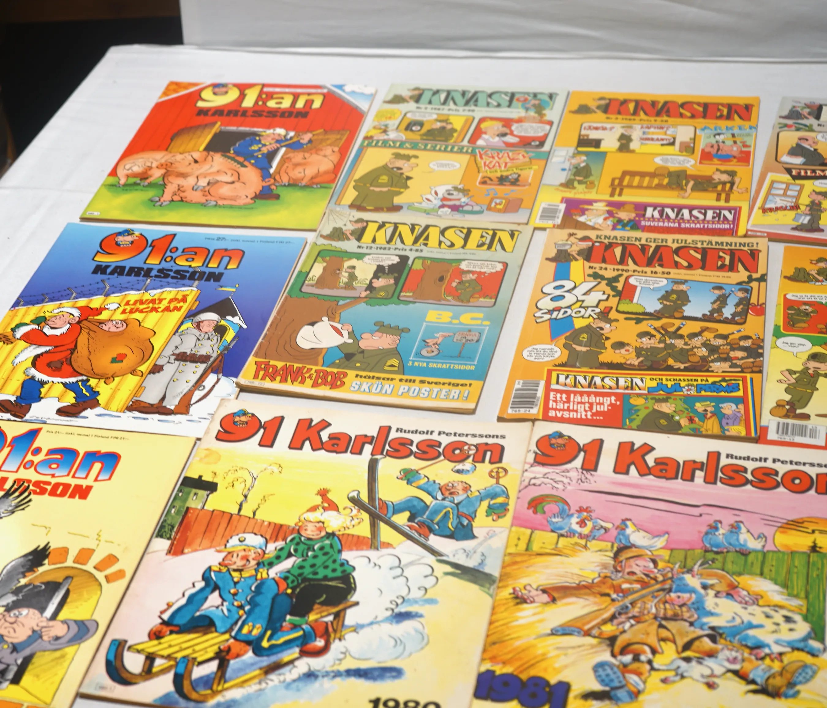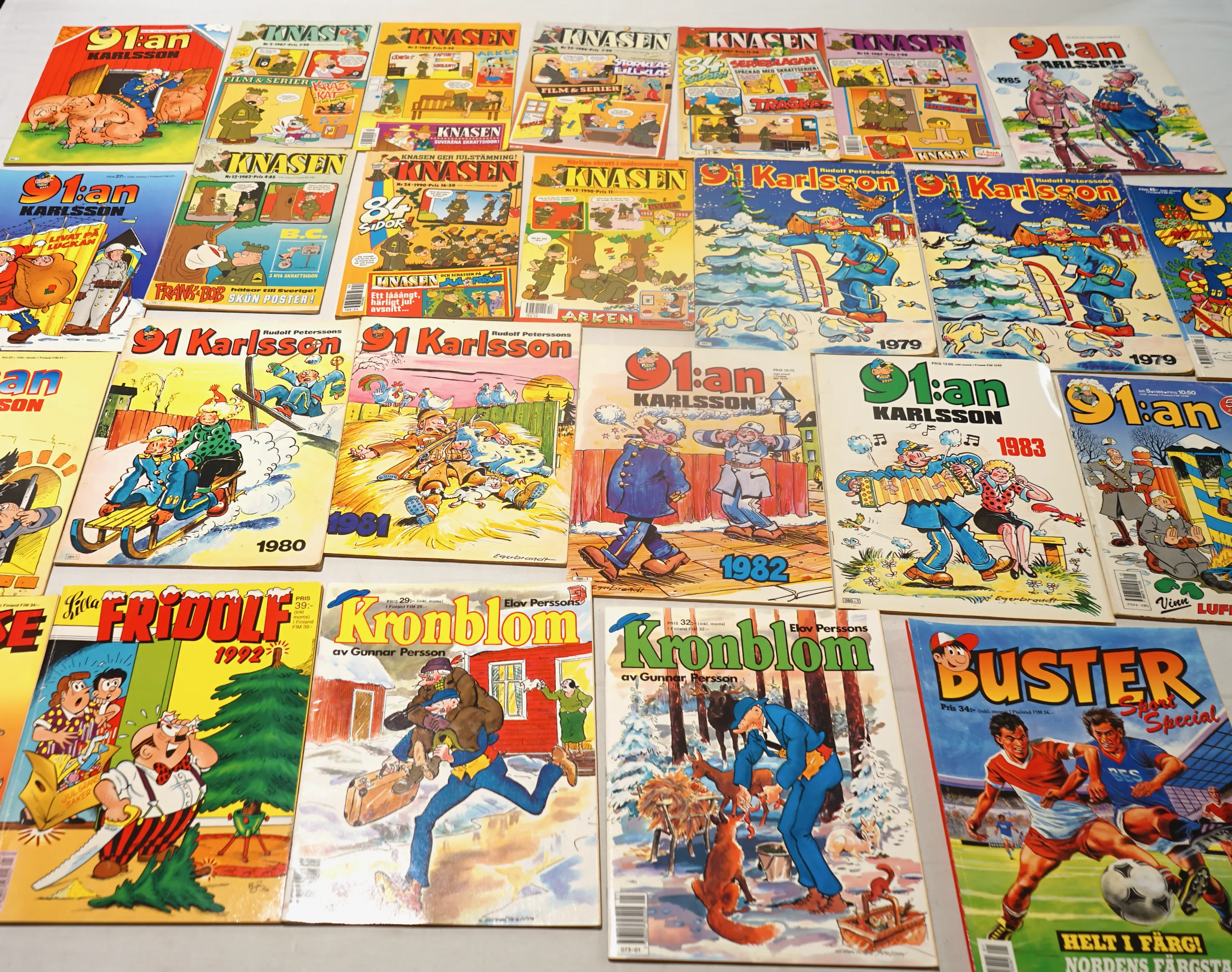 104176.Knasen nr 2 1987, nr 3 1989, nr 25 1986, nr 5 1987, nr 14 1987, nr 13 1990, nr 24 1990+ nr 12 1982 91 Karlsson1979-1983 + 1985, + Kronblom, Åsa Nisse, lilla Fridolf mm.
