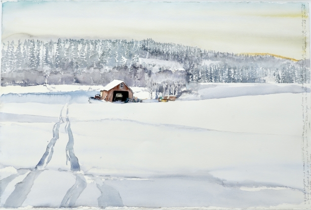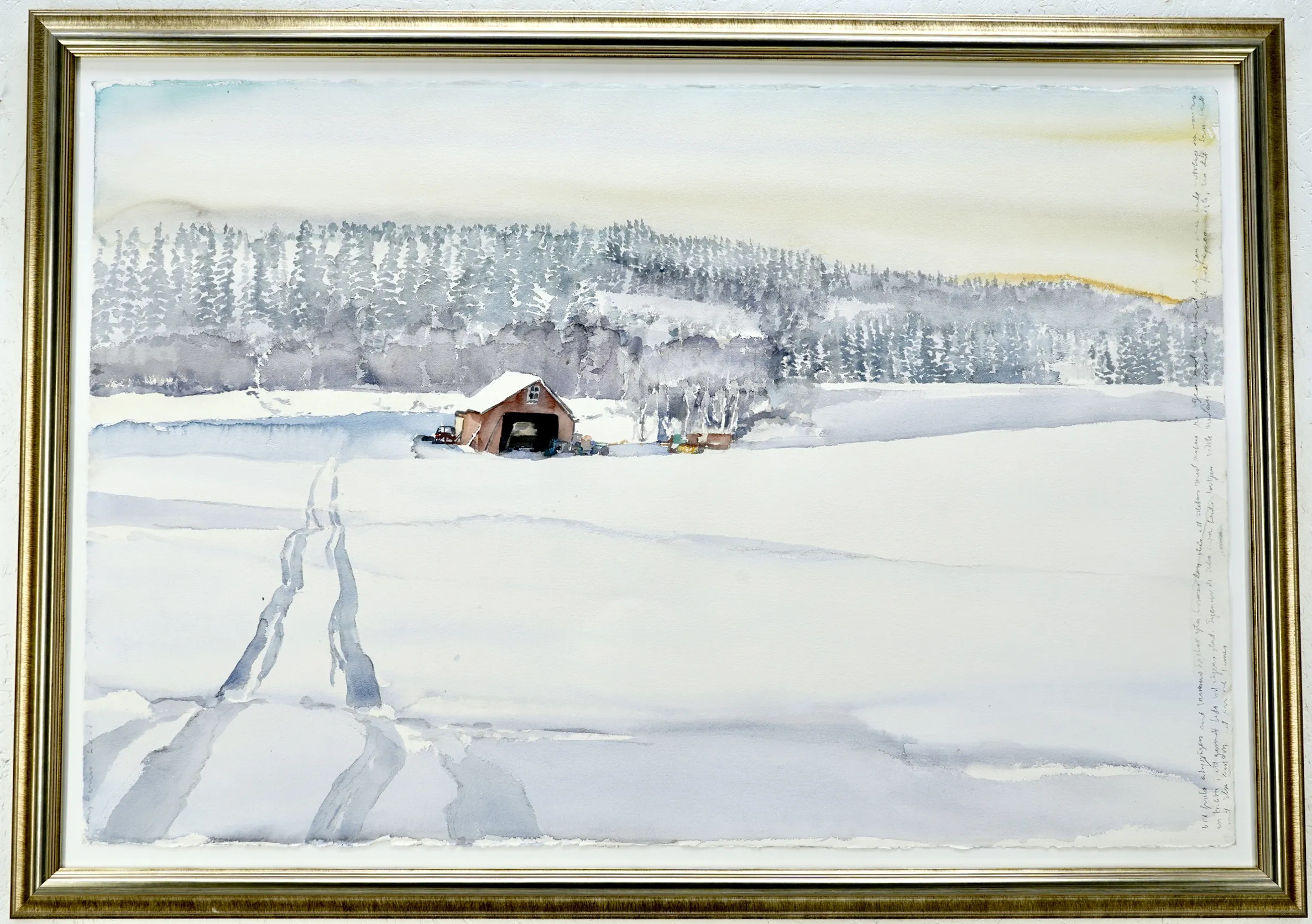 "Vid första avtagsvägen, 2008".Proveniens. Lars Lerin, Vi har fått förtroendet att Julstäda i Ateljén o lagren och göra plats till nya projekt (OBS ingen följerätt tillkommer då det är från Konstnären direkt)