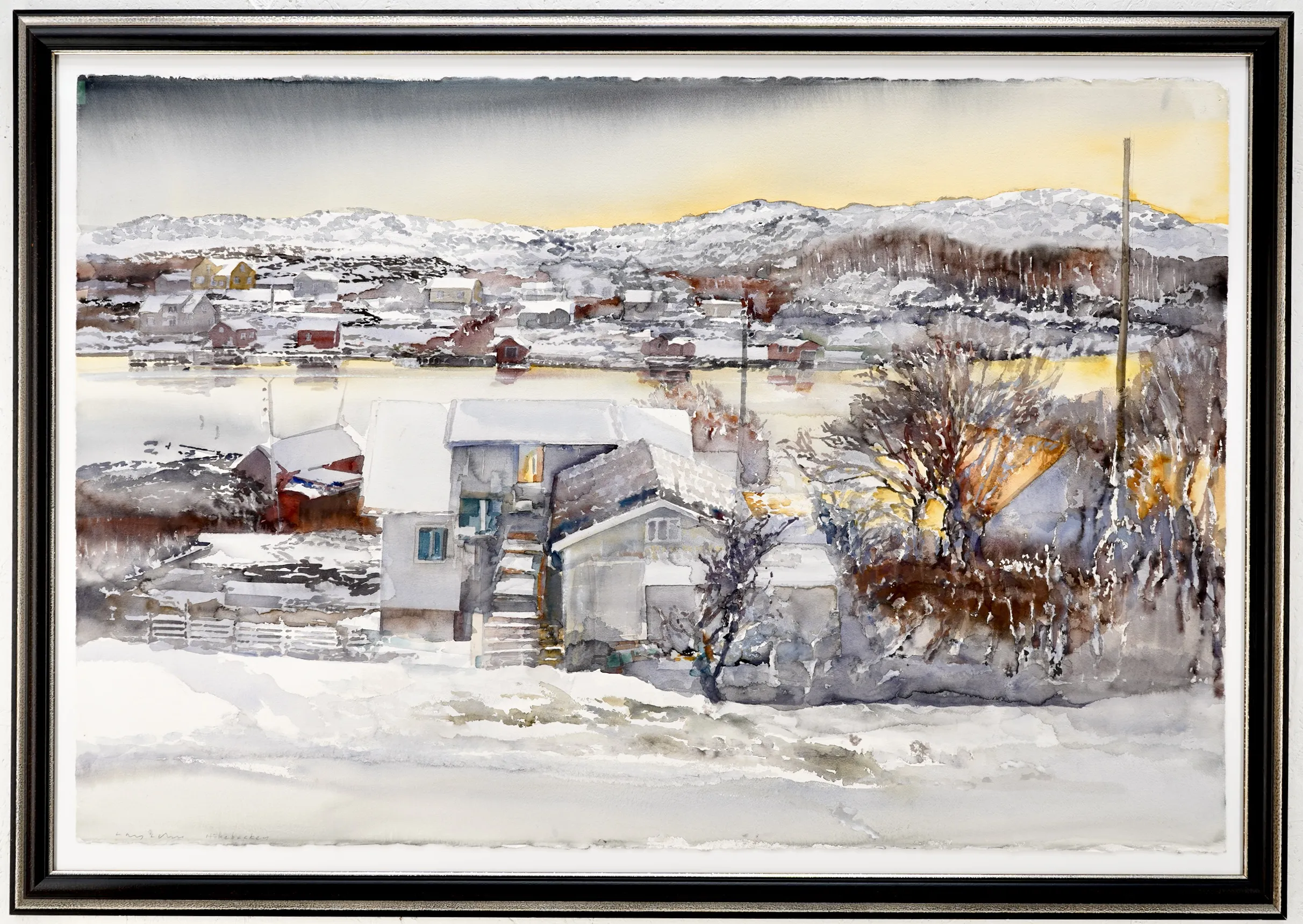 "Hökebacken, Hamburgsund Bohuslän".Proveniens. Lars Lerin, Vi har fått förtroendet att Julstäda i Ateljén o lagren och göra plats till nya projekt (OBS ingen följerätt tillkommer då det är från Konstnären direkt)
