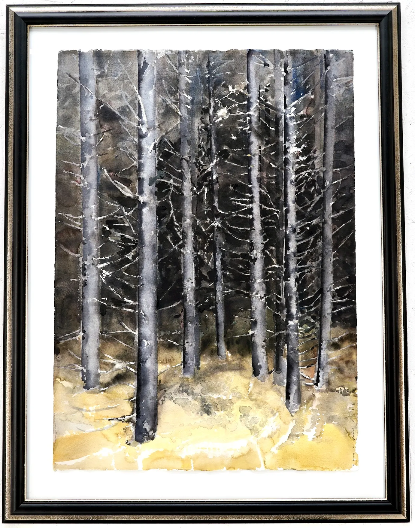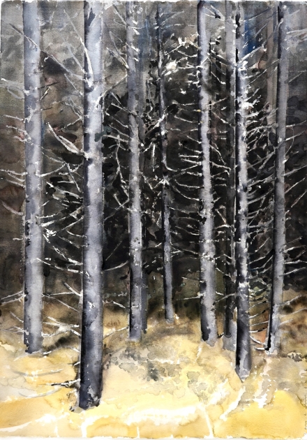 "Granskogen, 2016".Proveniens Lars Lerin, Vi har fått förtroendet att Julstäda i Ateljén o lagren och göra plats till nya projekt (OBS ingen följerätt tillkommer då det är från Konstnären direkt)