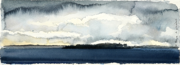 "Molnformationer, Hammarö 2019".Proveniens Lars Lerin, Vi har fått förtroendet att Julstäda i Ateljén o lagren och göra plats till nya projekt (OBS ingen följerätt tillkommer då det är från Konstnären direkt)