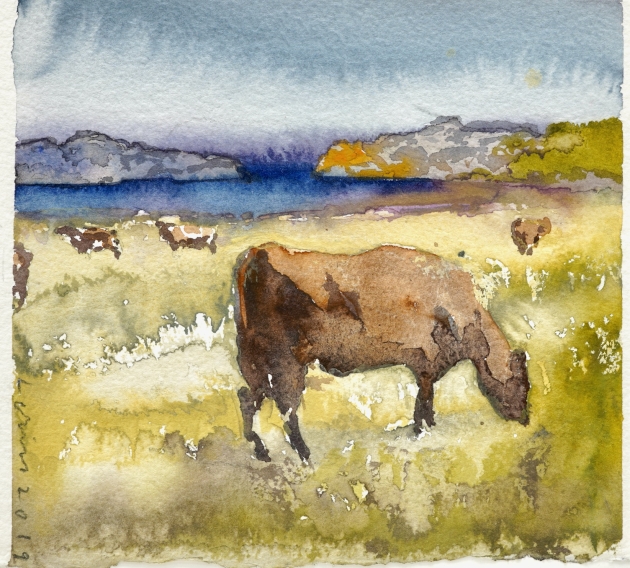 "Kor i Bohuslän I, 2019".Proveniens Lars Lerin, Vi har fått förtroendet att Julstäda i Ateljén o lagren och göra plats till nya projekt (OBS ingen följerätt tillkommer då det är från Konstnären direkt)