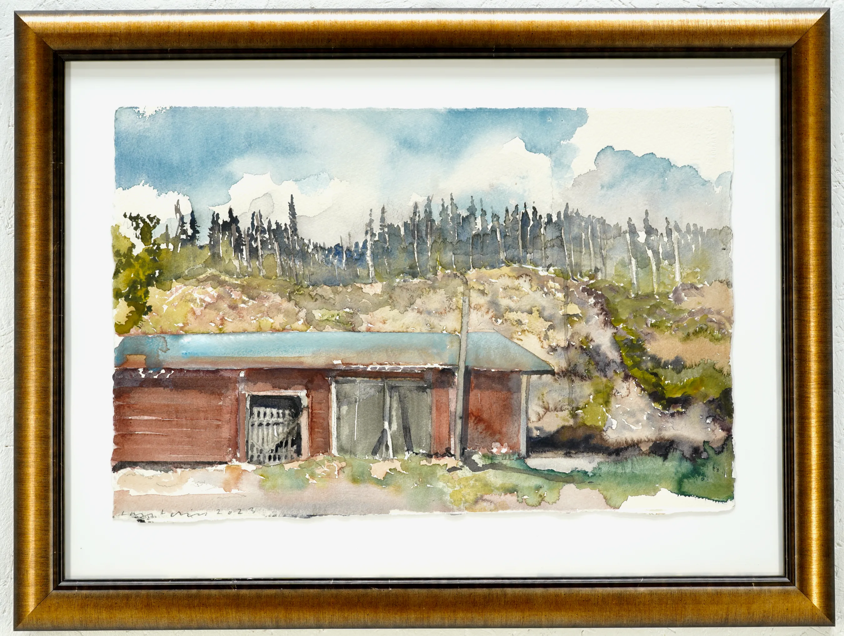 "Vid skogens slut, 2023" Proveniens. Lars Lerin, Vi har fått förtroendet att Julstäda i Ateljén o lagren och göra plats till nya projekt (OBS ingen följerätt tillkommer då det är från Konstnären direkt)