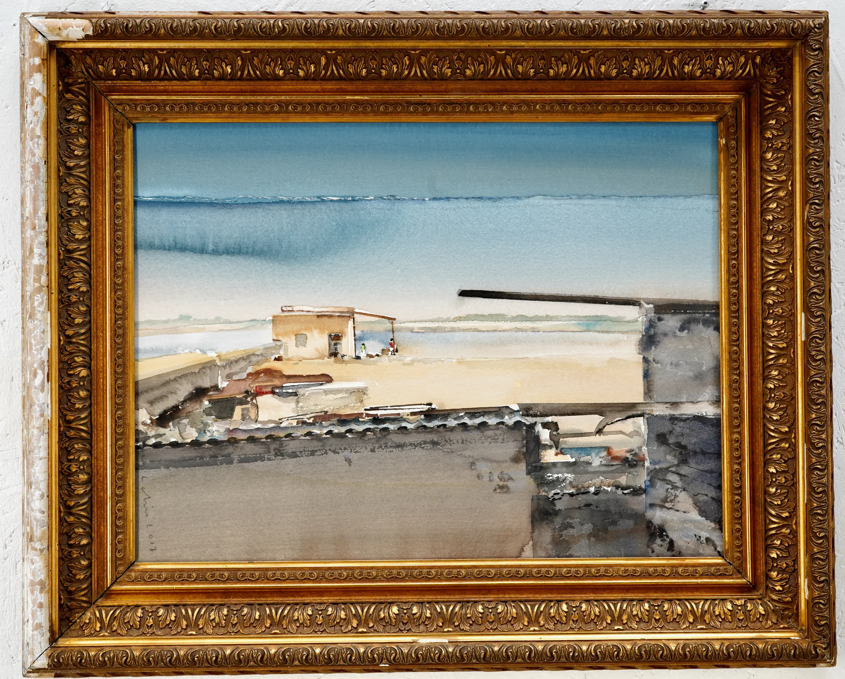 "Vid Ganges, Benares Indien 2017".Collagé m. 2st papper, Proveniens Lars Lerin, Vi har fått förtroendet att Julstäda i Ateljén o lagren och göra plats till nya projekt (OBS ingen följerätt tillkommer då det är från Konstnären direkt)