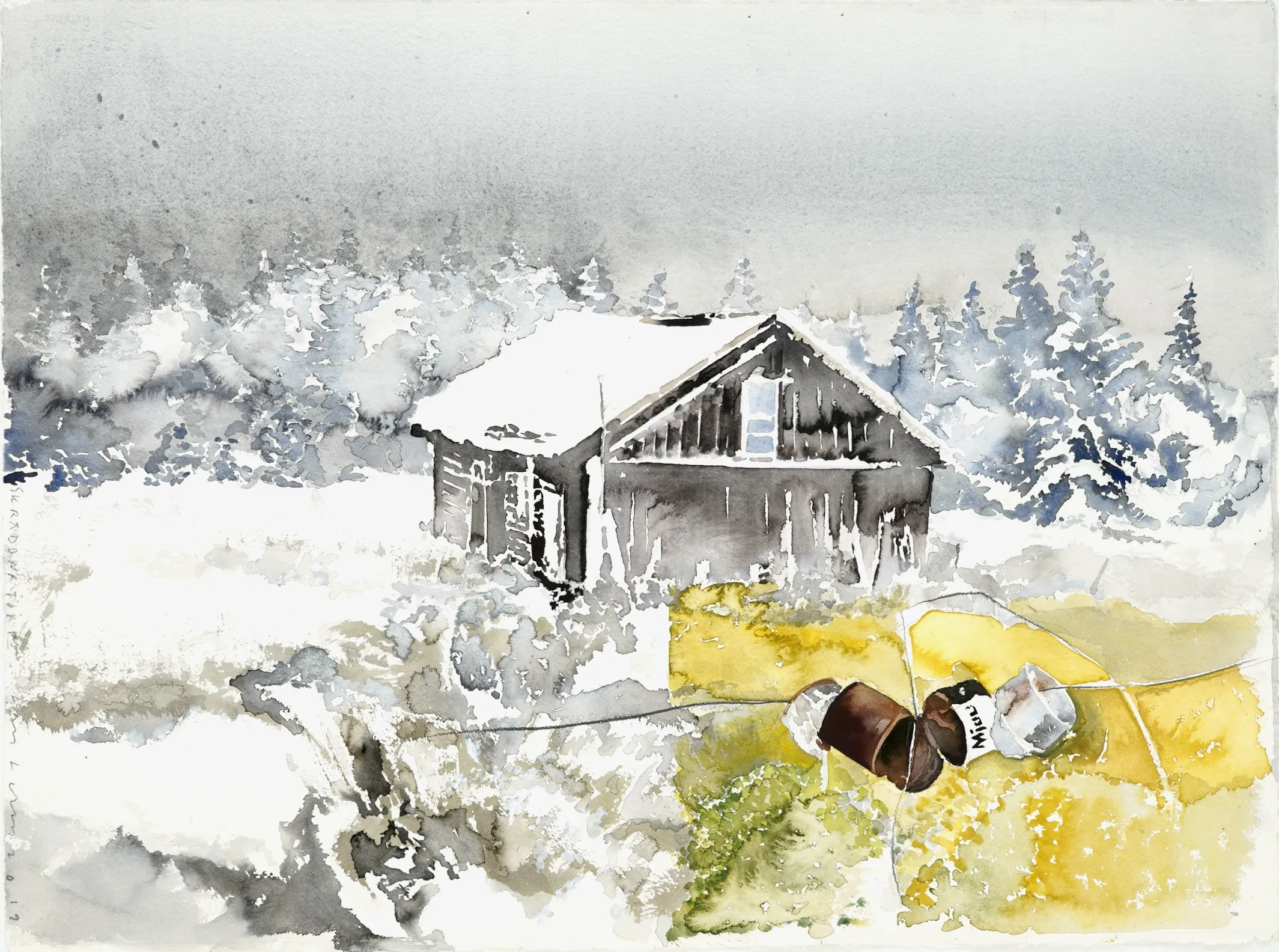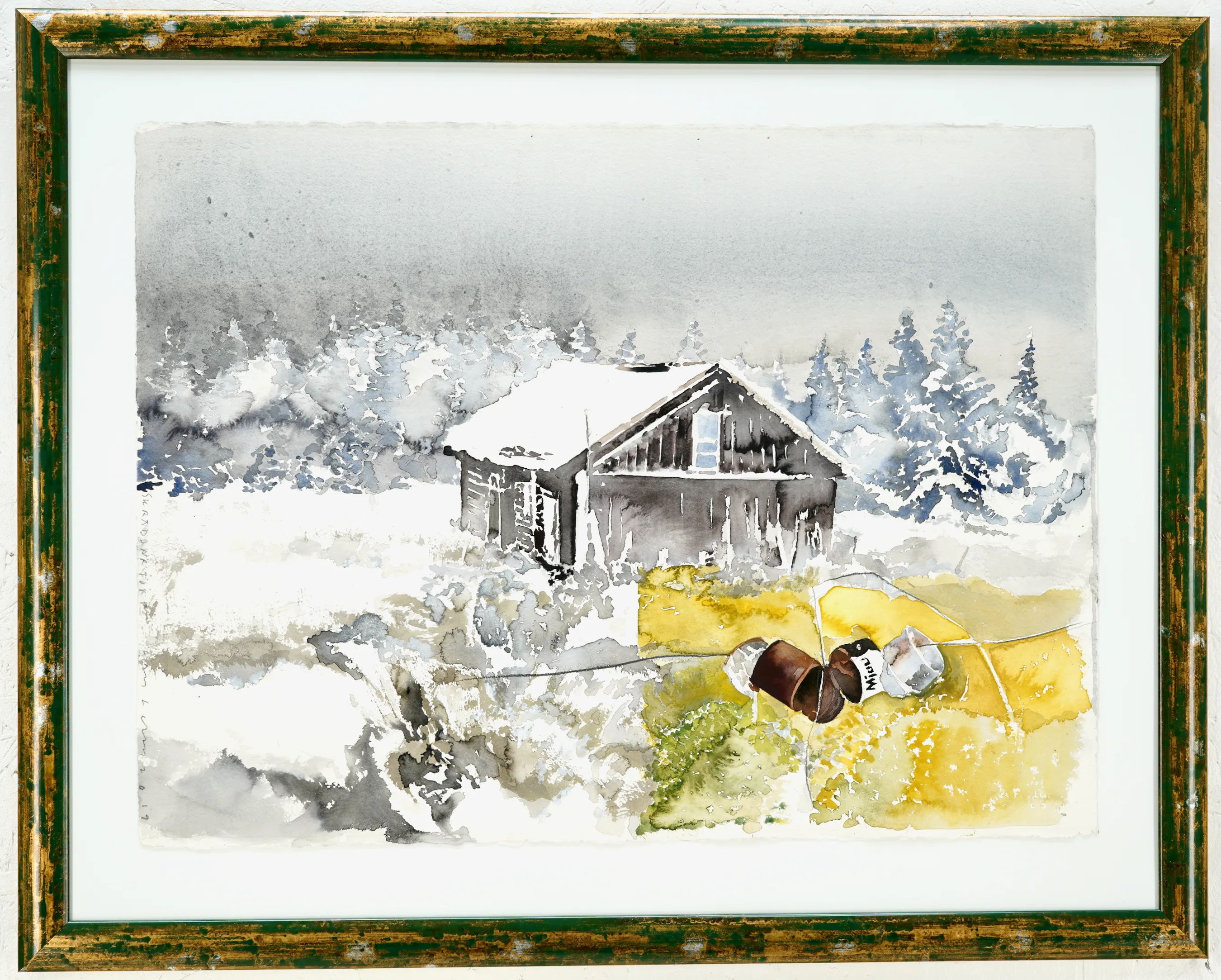 "Skräddartorp, 2019".Litteratur. Avbildad på sid.37 & 15 i boken Lars Lerin, Elsa I Skräddartorp och hennes 28 katter ISBN:978-91-7803-847-3. Proveniens. Lars Lerin, Vi har fått förtroendet att Julstäda i Ateljén o lagren och göra plats till nya projekt (OBS ingen följerätt tillkommer då det är från Konstnären direkt)