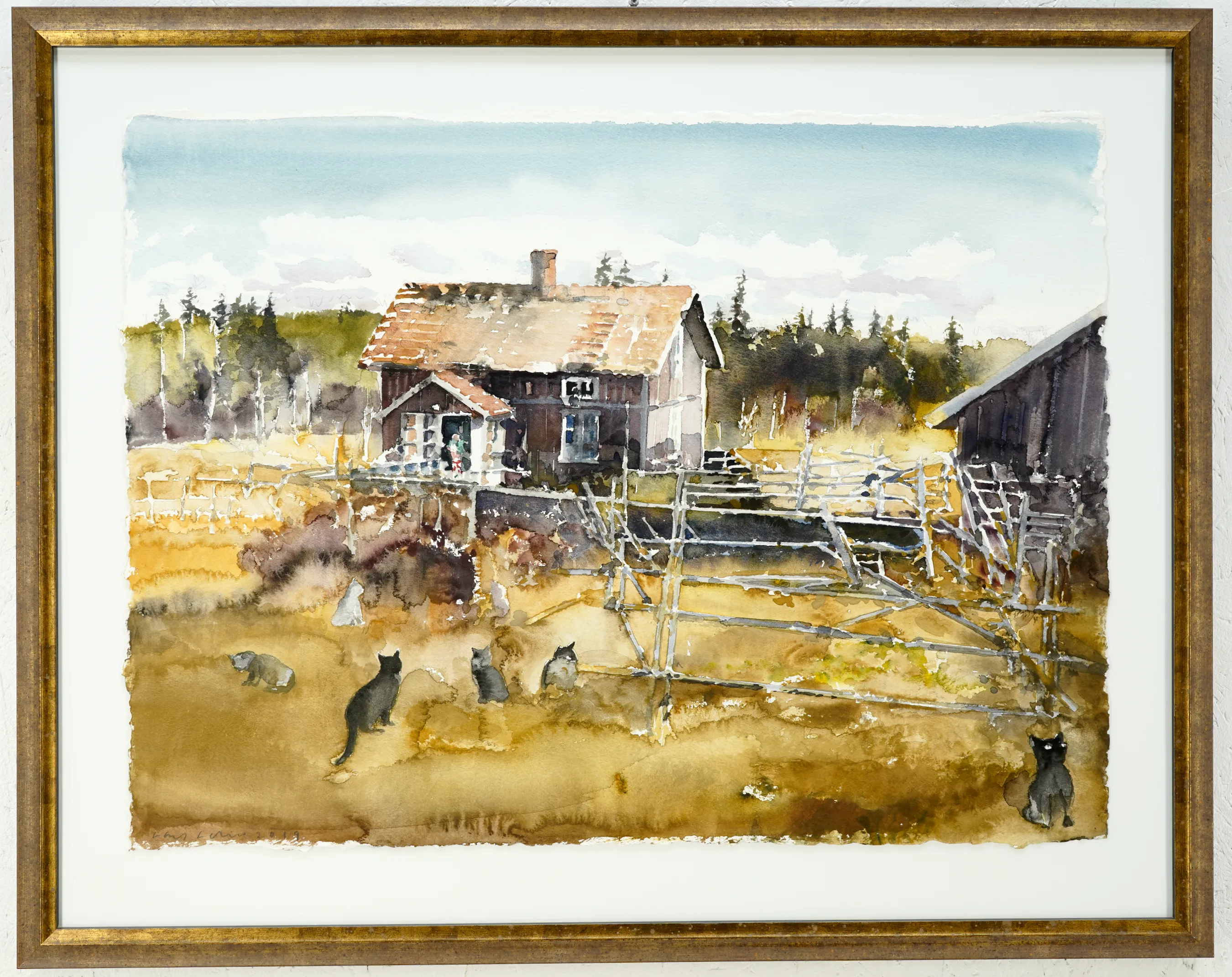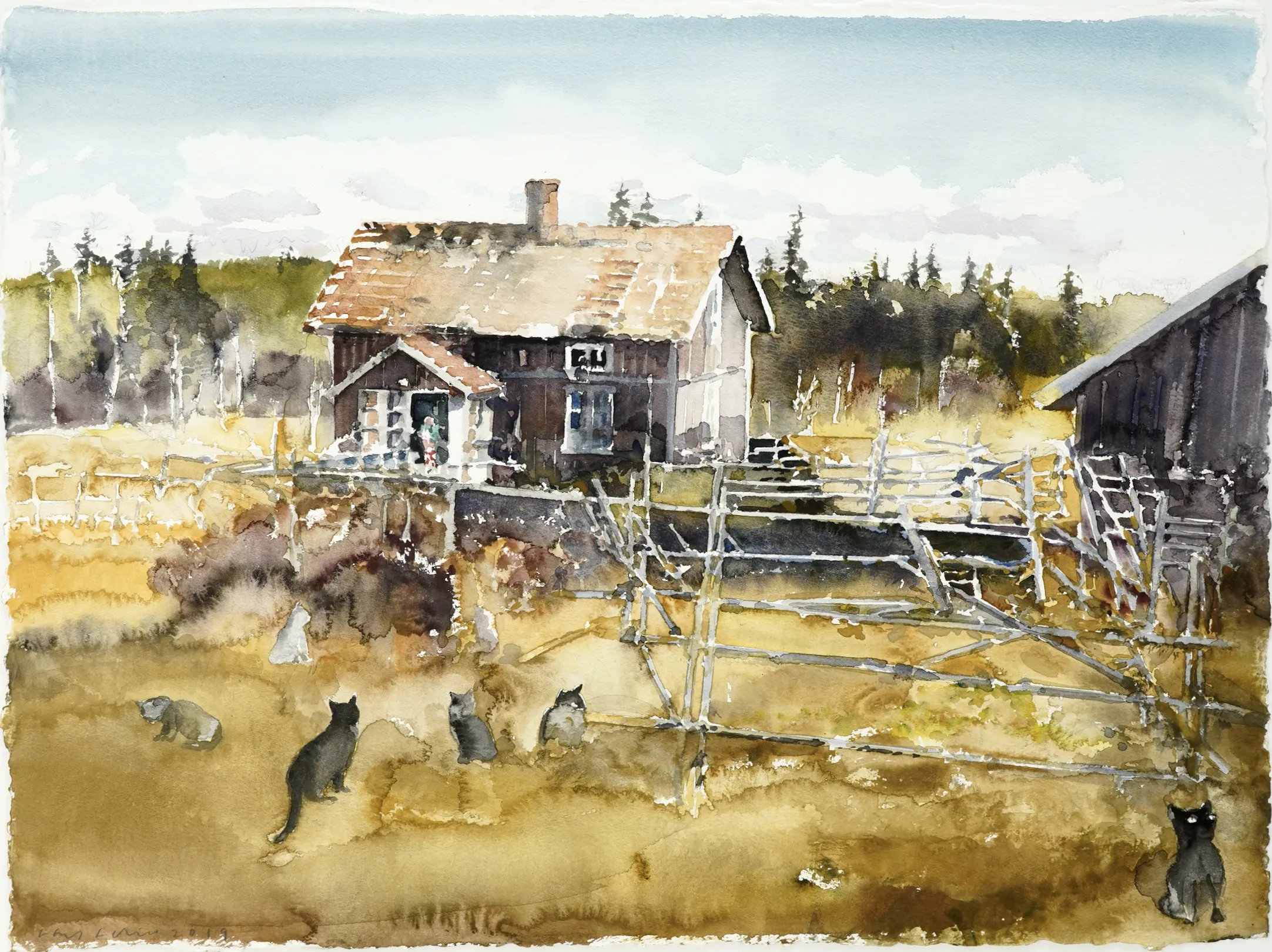 "Skräddartorp, 2019" Litteratur. Avbildad på sid.54 i boken Lars Lerin, Elsa i skräddartorp och hennes 28 katter ISBN: 978-91-7803-847-3