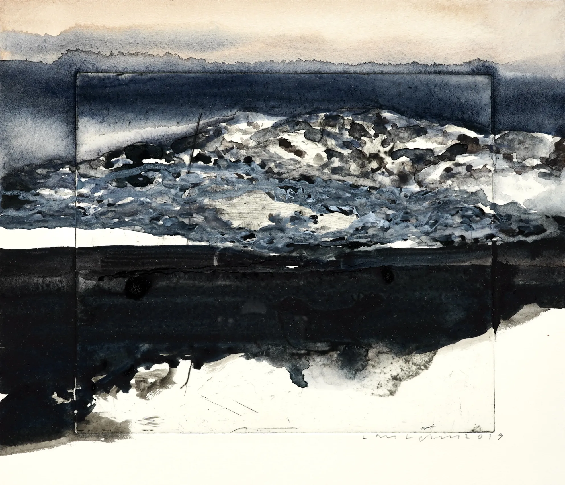 "Svart skymning, 2019" Helakvarellerad etsning Proveniens Lars Lerin, Vi har fått förtroendet att Julstäda i Ateljén o lagren och göra plats till nya projekt (OBS ingen följerätt tillkommer då det är från Konstnären direkt)