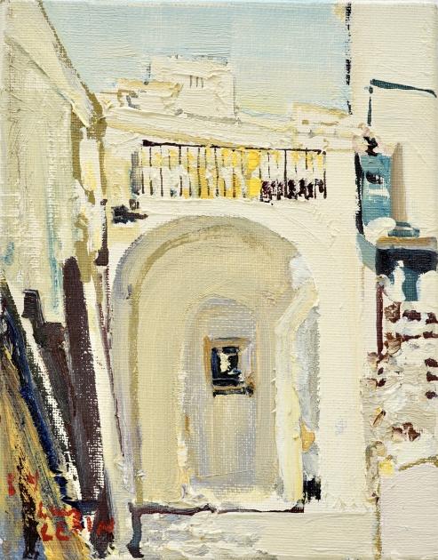 "Passagé Grekland, 1984".Proveniens Lars Lerin, Vi har fått förtroendet att Julstäda i Ateljén o lagren och göra plats till nya projekt (OBS ingen följerätt tillkommer då det är från Konstnären direkt)