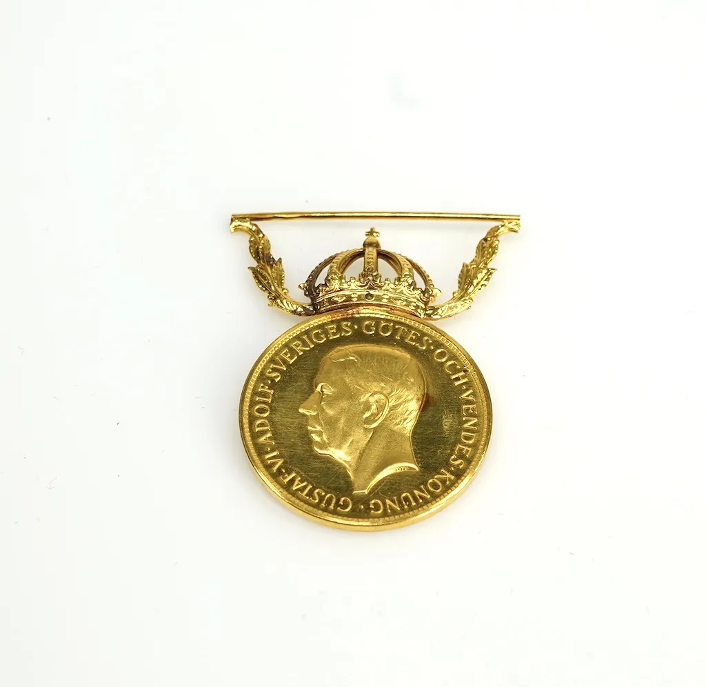 Vikt.13,6gr Proveniens: Familjen Rülcker (Johnny Rülcker), Gustavsfors Herrgård, 1746 anlade Uddeholmsbolaget ett hammarbruk vid Knoälven vilket kom att bli början på Gustafsfors brukssamhälle. Kring verksbyggnaderna växte bostäder med tillhörande jordbruk upp. I takt med att industrin expanderade förtätades bebyggelsen på orten. På 1860-talet anlades här också en masugn som 1871 kompletterades med ett bessemerverk. Detta kom att tjäna som föregångare till anläggningen i Hagfors. Under slutet av 1800-talet var Gustafsfors Uvåbygdens mest betydelsefulla industriort. Ett flertal av de byggnader som idag kännetecknar orten uppfördes under denna tid. Hit hör arbetarbostäder och ekonomibyggnader i trä eller sindersten intill lämningarna efter hyttan men också kring smedjan och handelsboden. Till samhällets äldsta byggnader räknas gamla förvaltarbostaden och herrgården med skogsbolagets revirkontor, vilka tillhör bruksortens tidigaste byggnader.