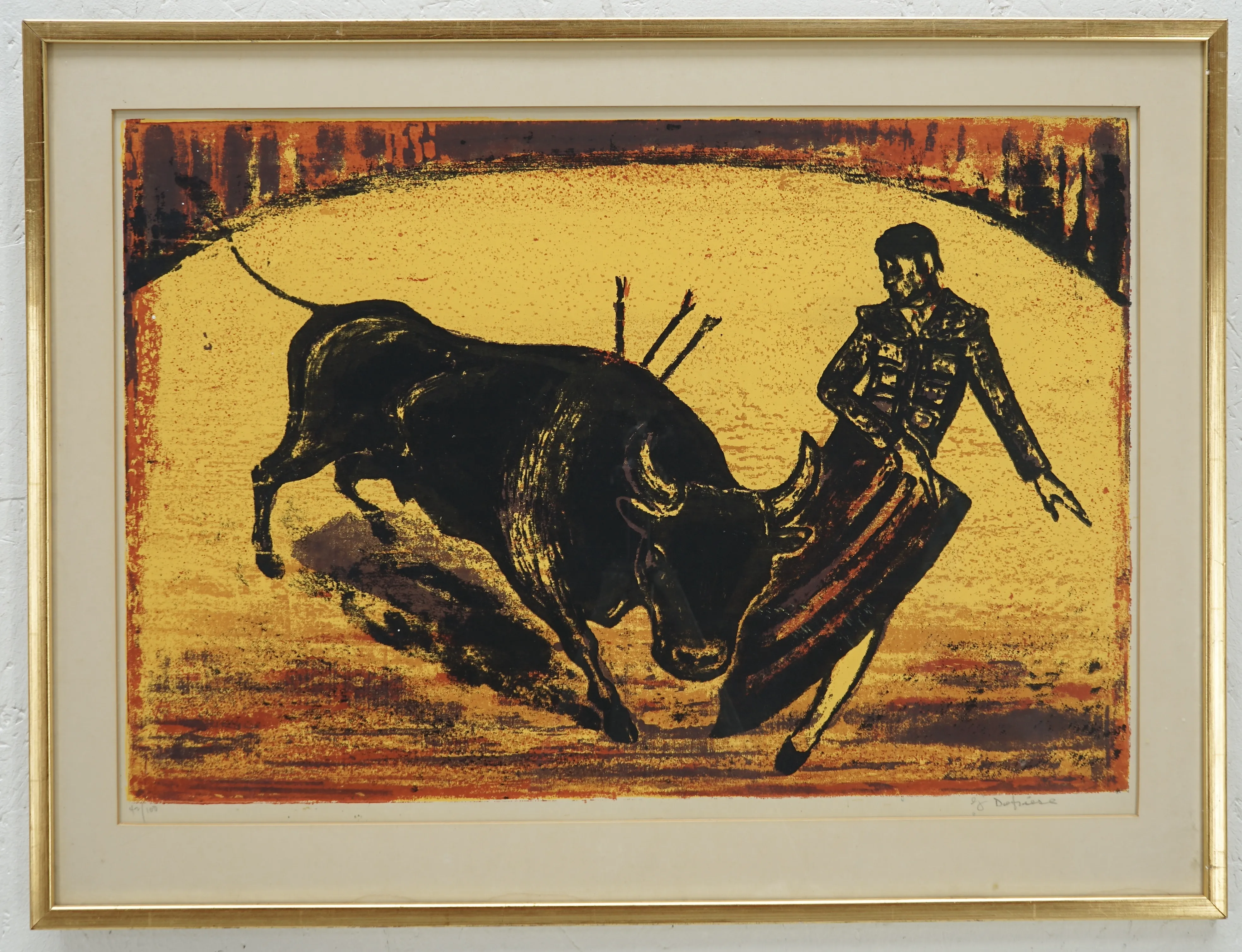 100. Oidentifierad konstnär litografi "Matador & tjur" 42/100