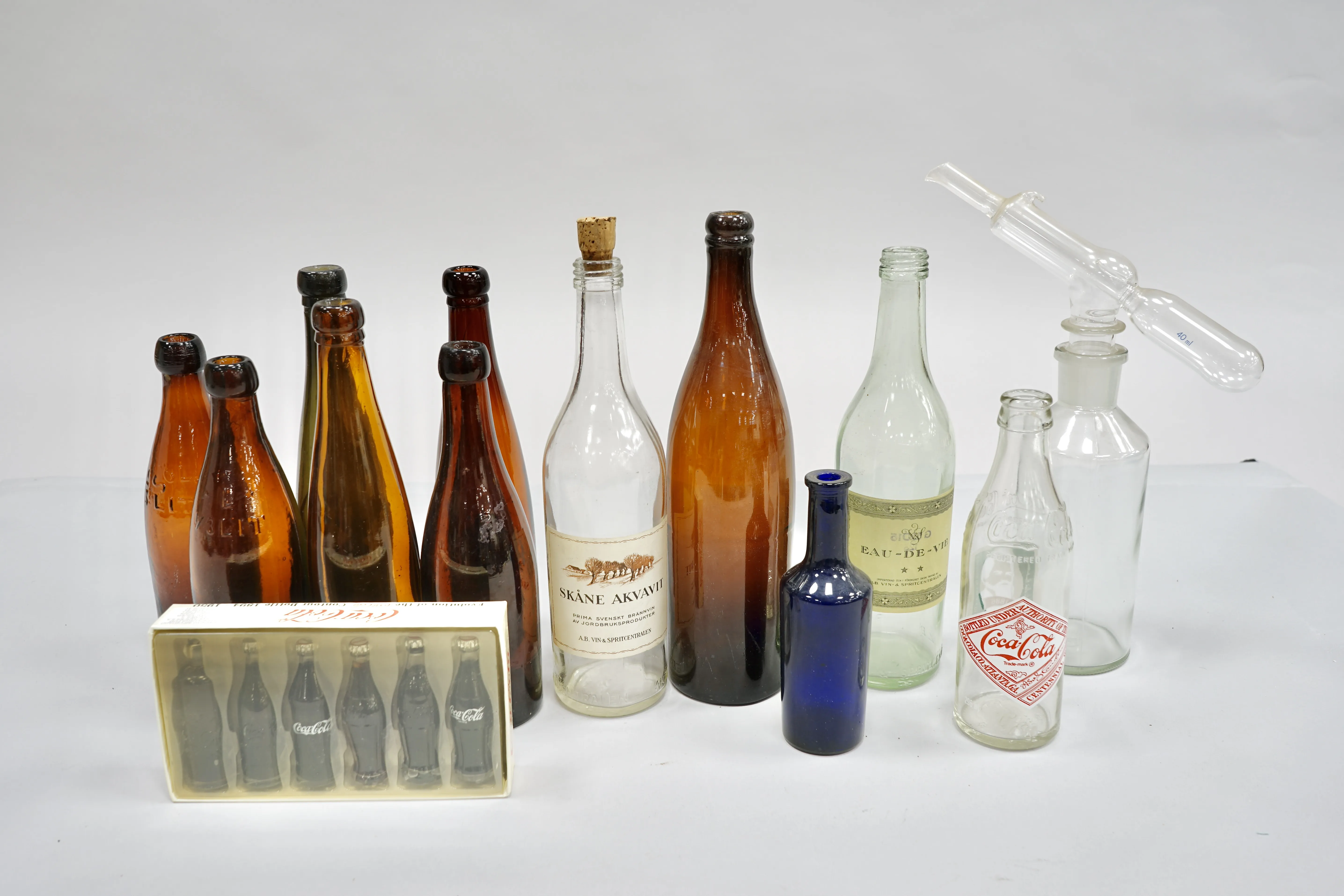 Parti äldre flaskor + laborations flaska