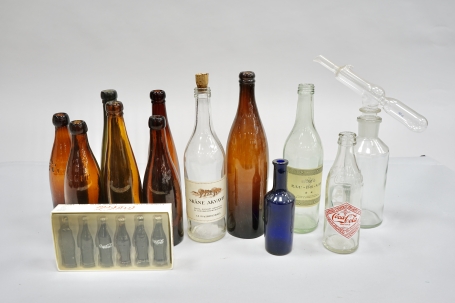 385. Parti äldre flaskor + laborations flaska