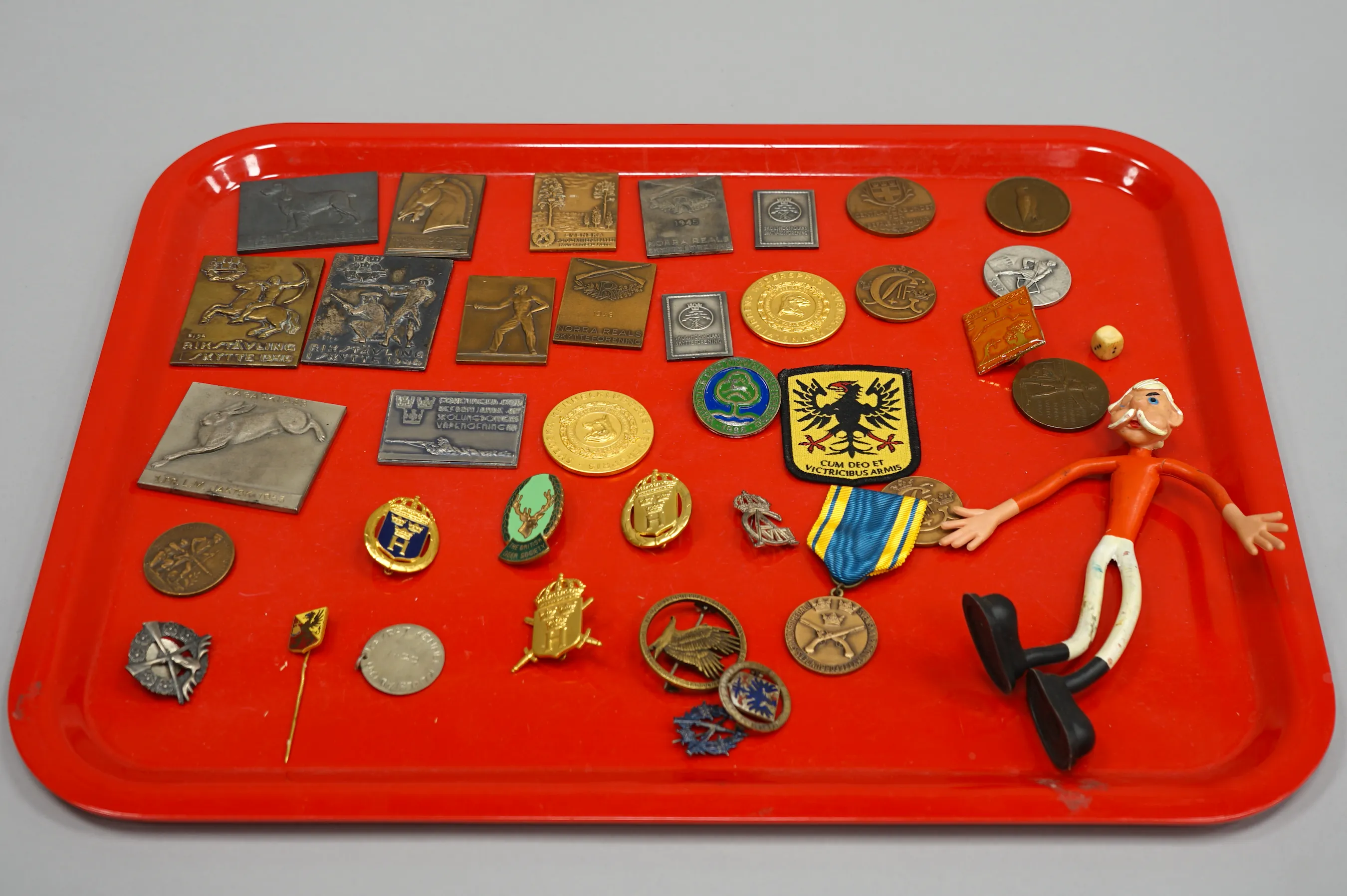 Parti Medaljer & Plaketter samt leksaks figur