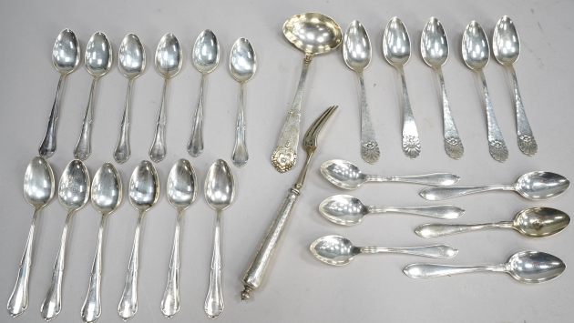 106156. Parti Silver, Kaffeskedar & Teskedar, slev, gaffel Vikt 369gr.