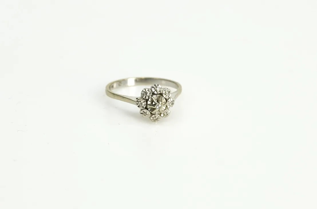 105814. Ring 18k Vitguld m.stenar Vikt.2gr.