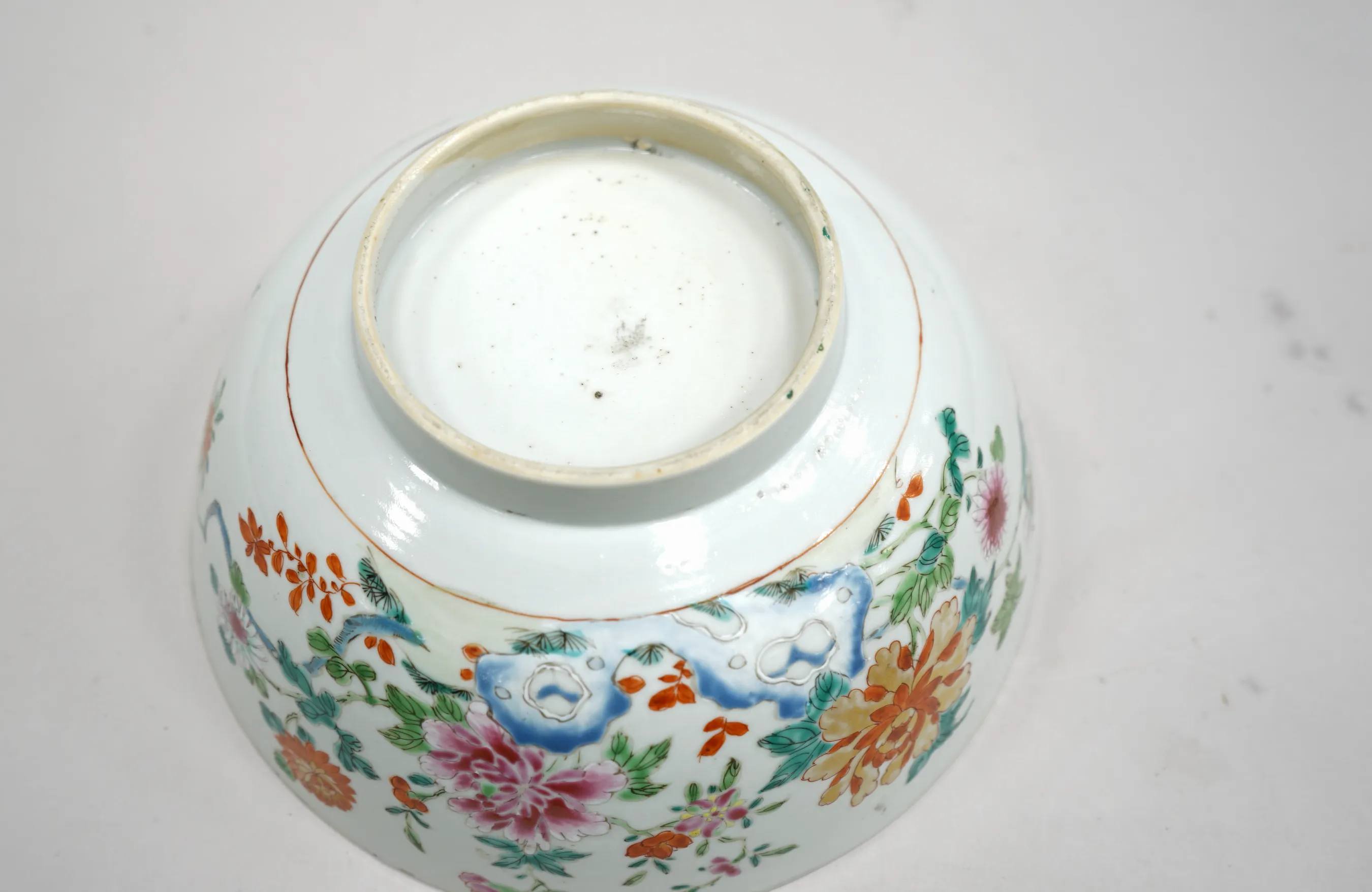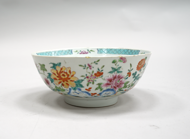 105503. Skål, Ostindisk, 1700-tal, pionmönster, Famille Rose