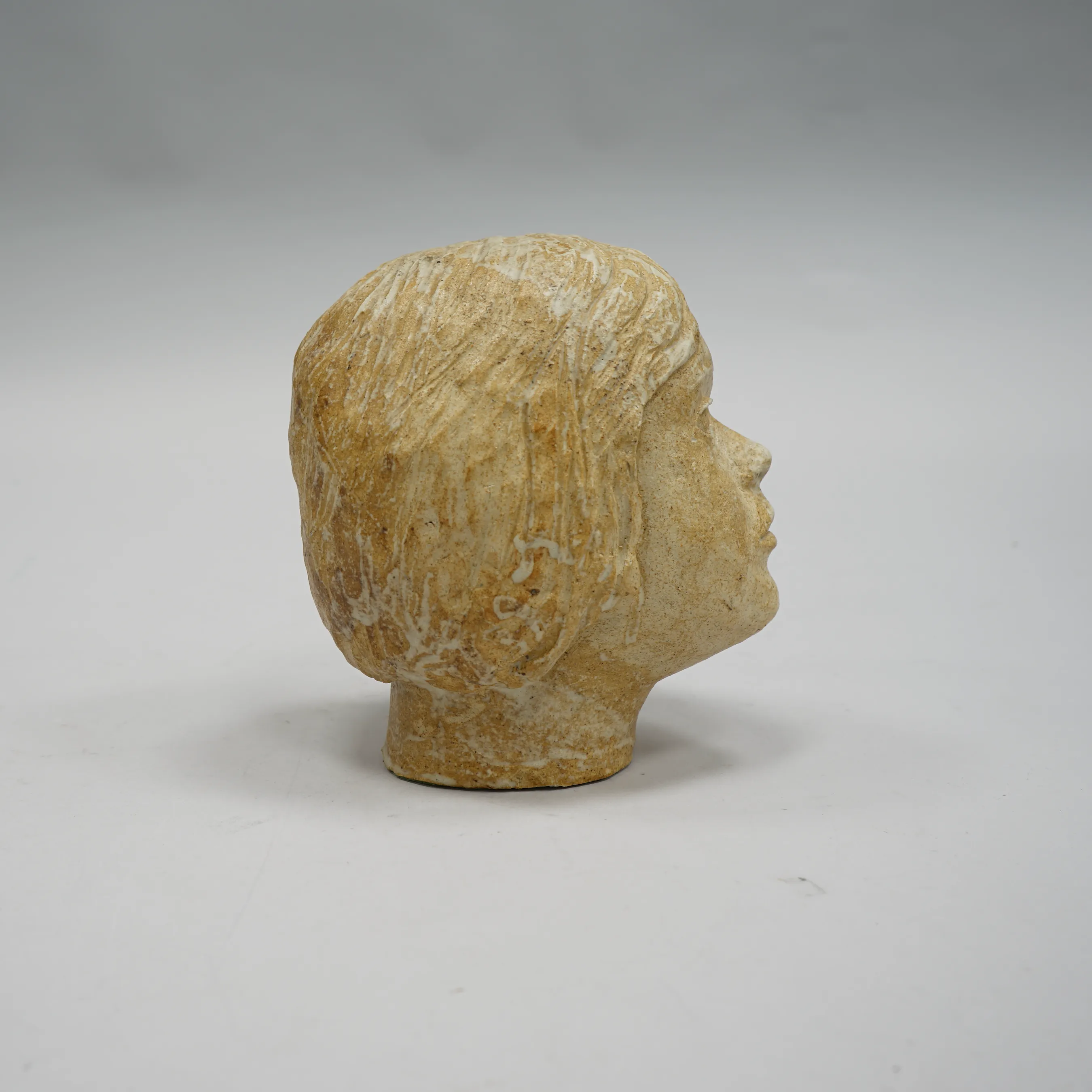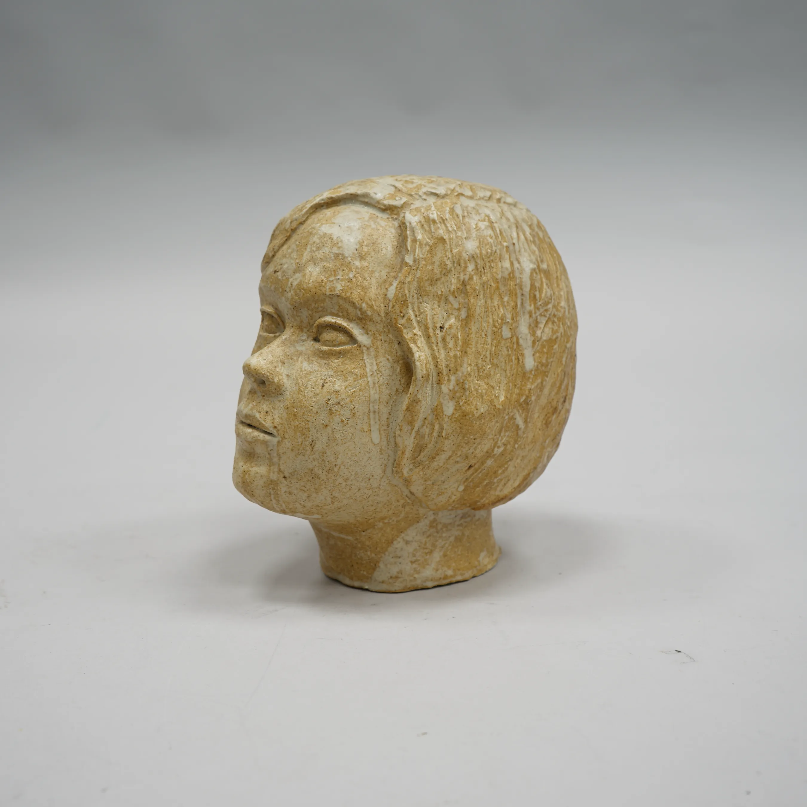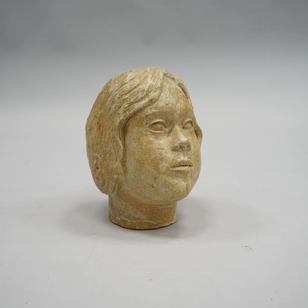 105667. Skulptur stengods "Flickhuvud" Sign. Kajsa