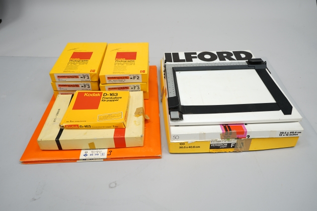 312. Stort parti fotopapper + pappersskärare