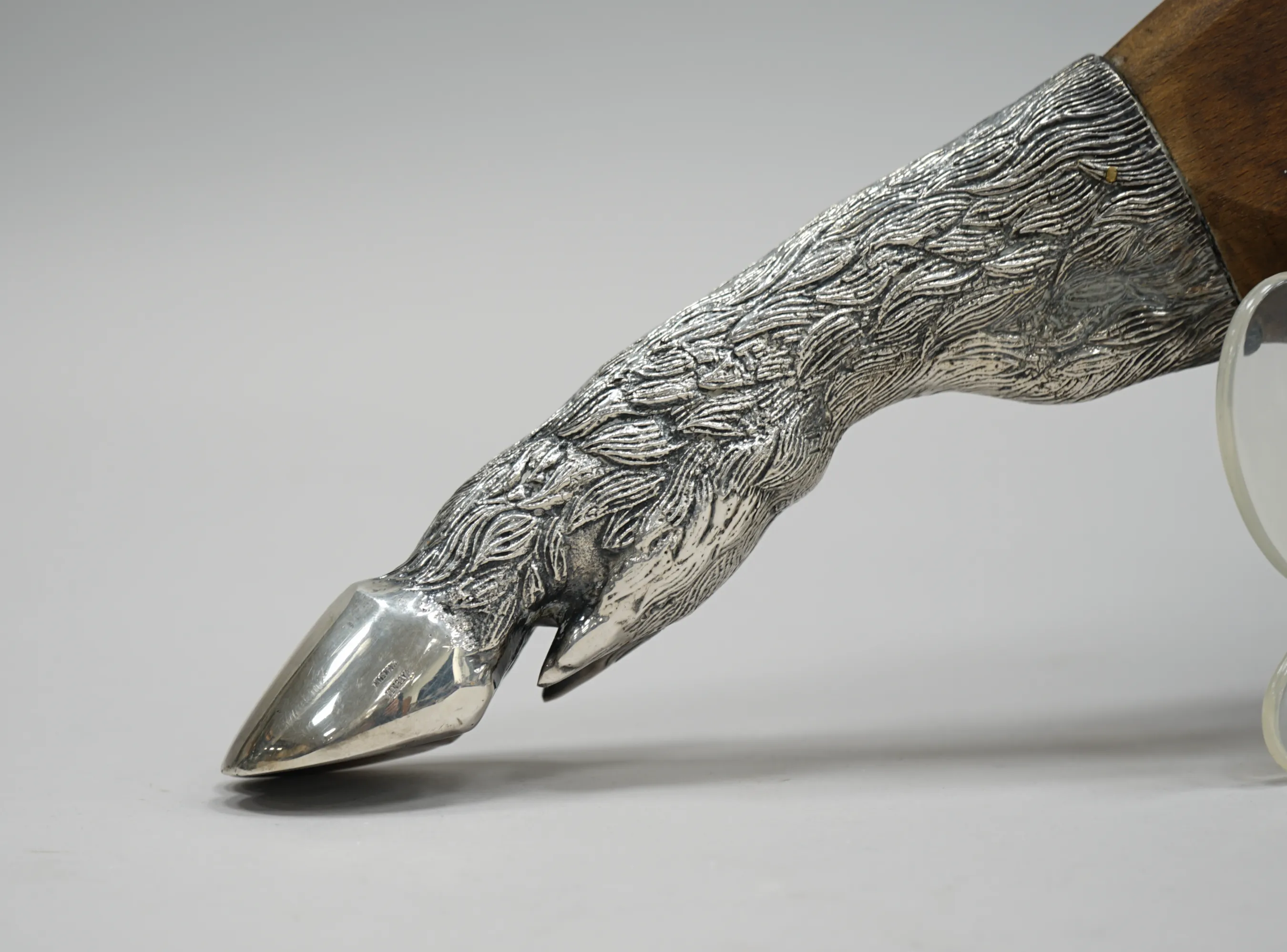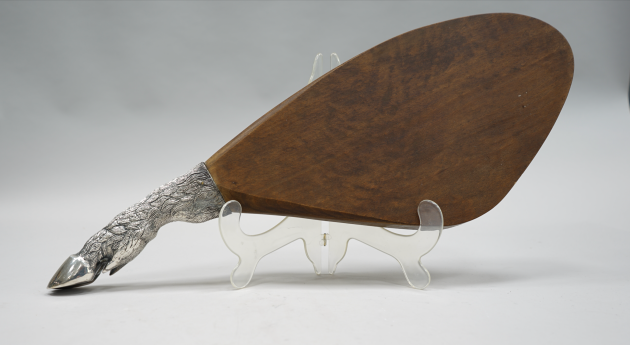 105619. Vildsvinsskärbräda, Massiv Valnöt Samt Försilvrad Mässing,Valenti Spanien