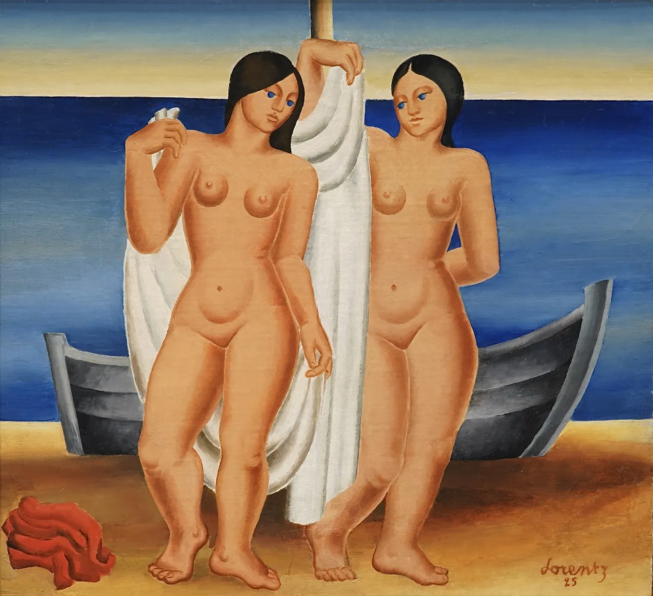 Waldemar Lorentzon är tydligt influerad av sin lärare och målar de här åren flera verk som ligger denne nära. Auktionens målning är ett bra exempel på detta där de nakna kvinnofigurerna är uppbyggda på ett sätt som var högsta franska mode inom konsten år 1925. I ett brev daterat 15 november 1925 detta år skriver Lorentzon till Egon Östlund efter att ha återvänt till Paris efter en tid i Sverige: